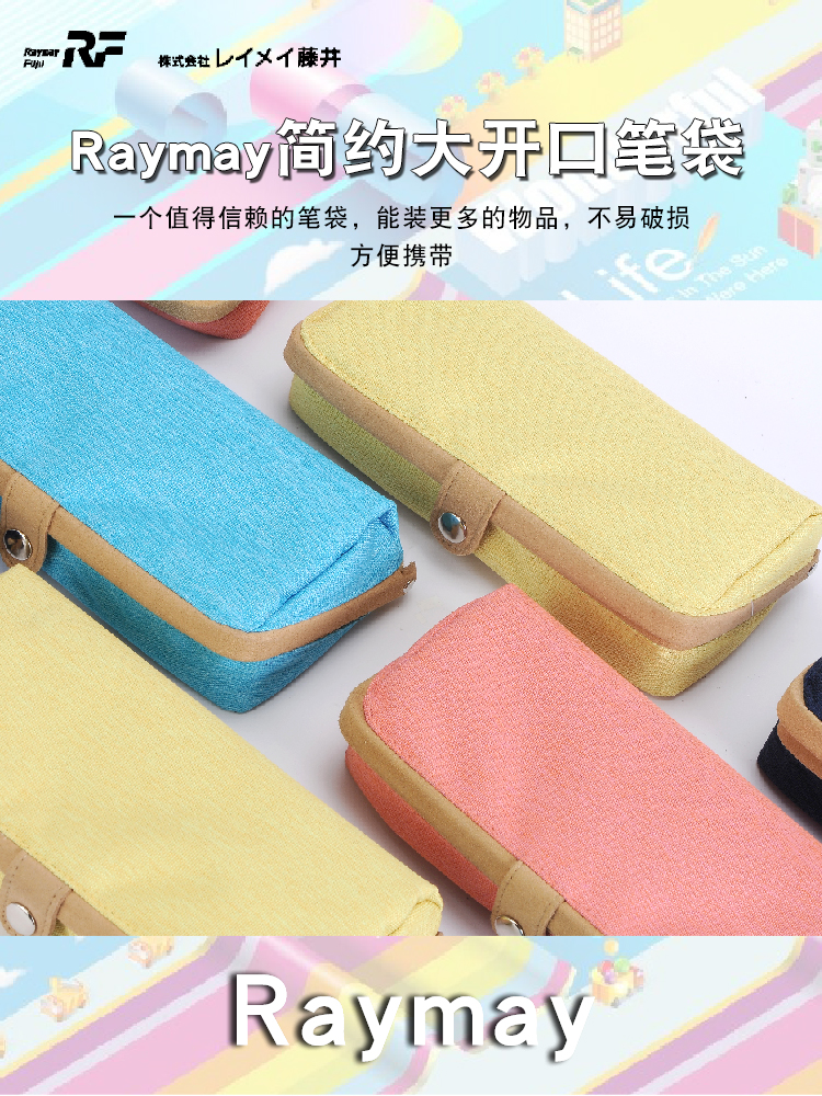 日本Raymay藤井FY349学生用彩色简约开口式文具袋大容量收纳笔袋