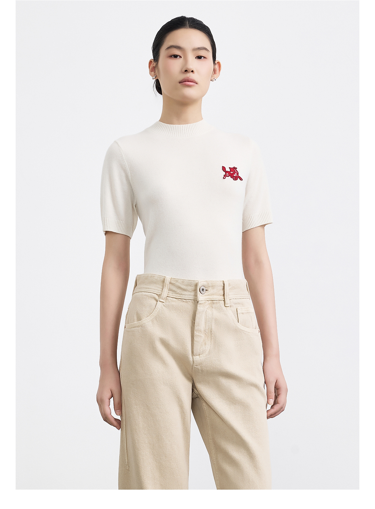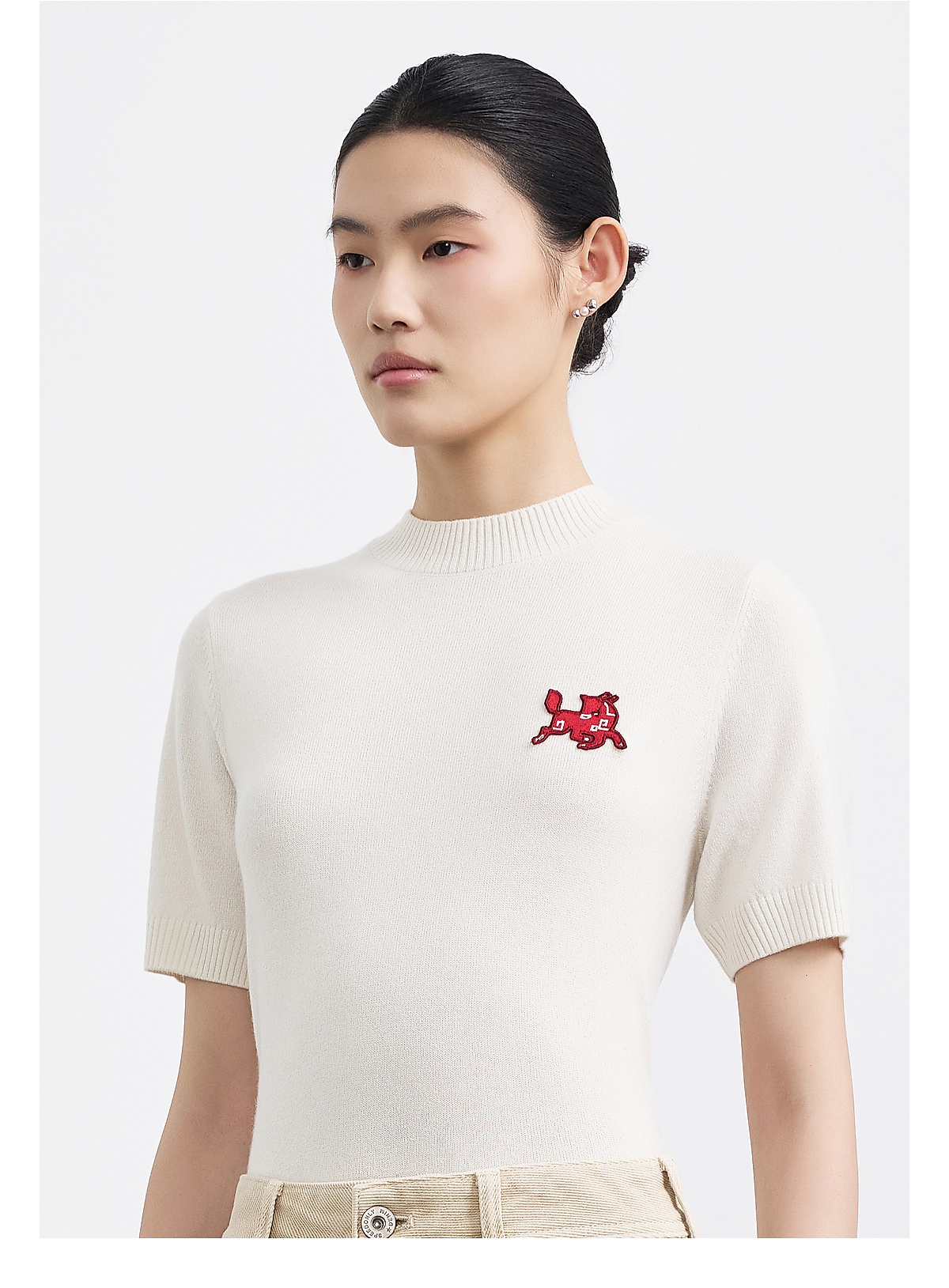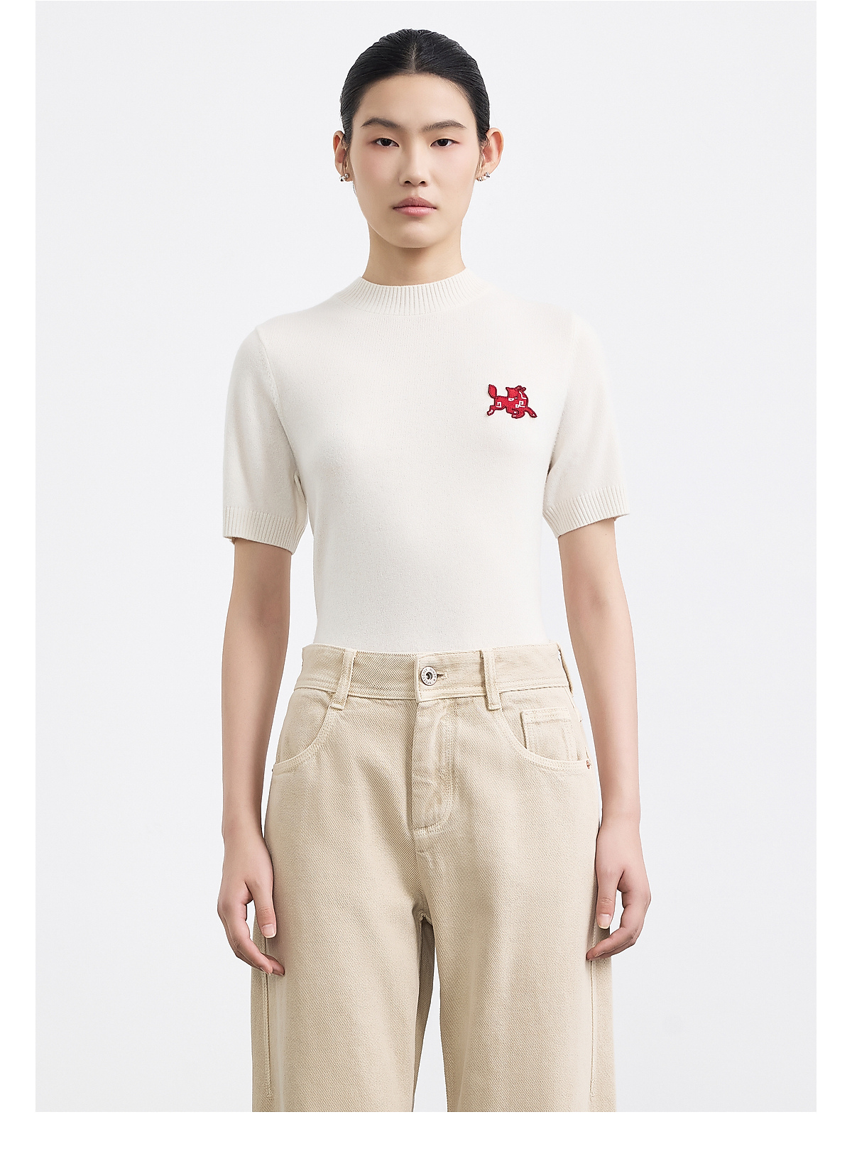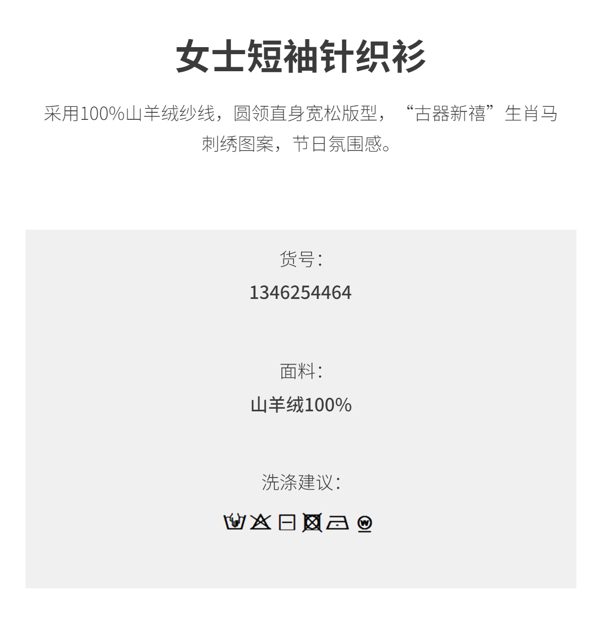 PURE TOUCH女装25秋冬新款羊绒短袖针织衫生肖马刺绣春节新年穿搭