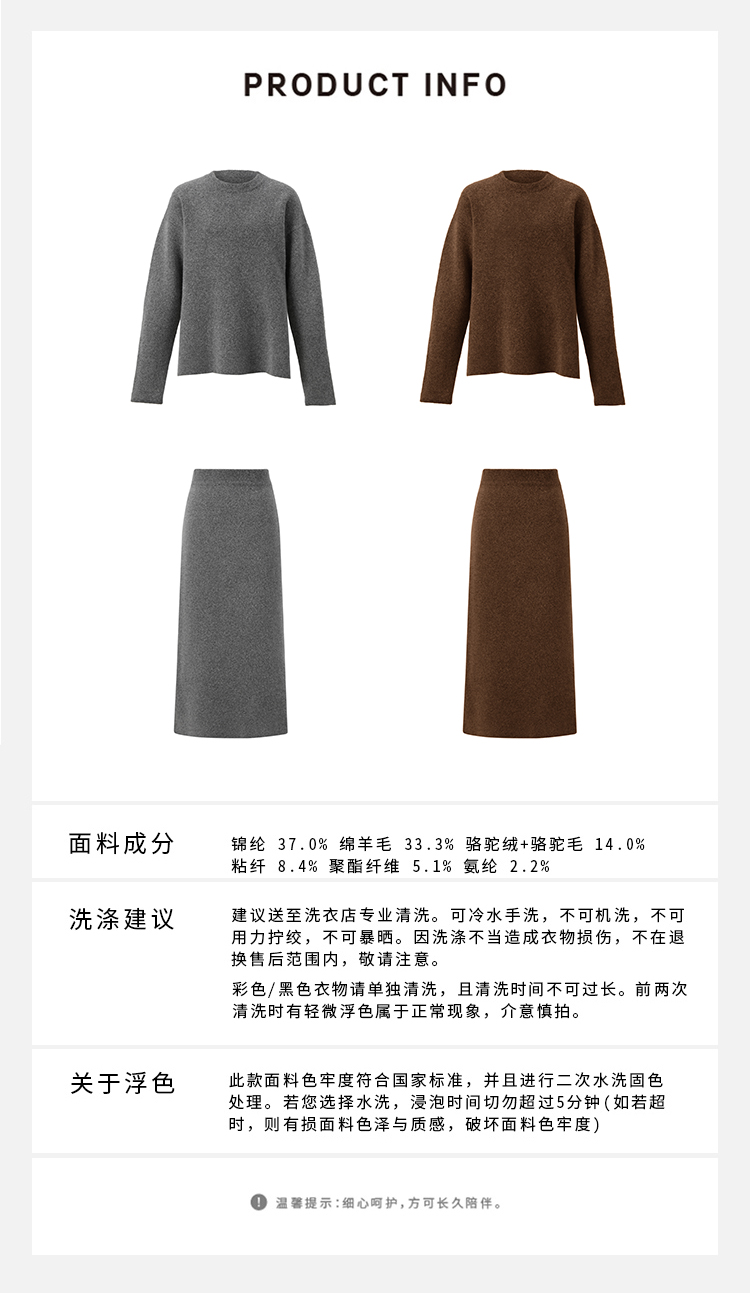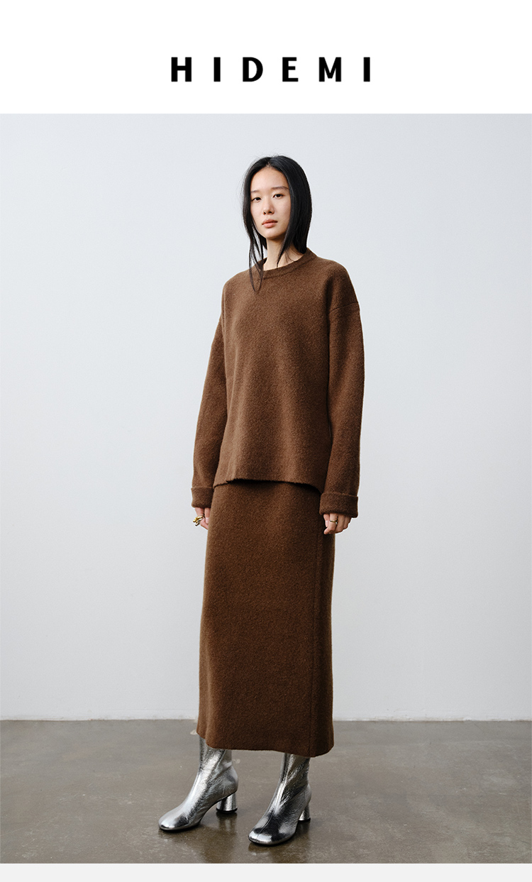 HIDEMI 骆驼毛羊毛花纱混纺加厚款毛衣半身裙套装 毛衣/半身裙