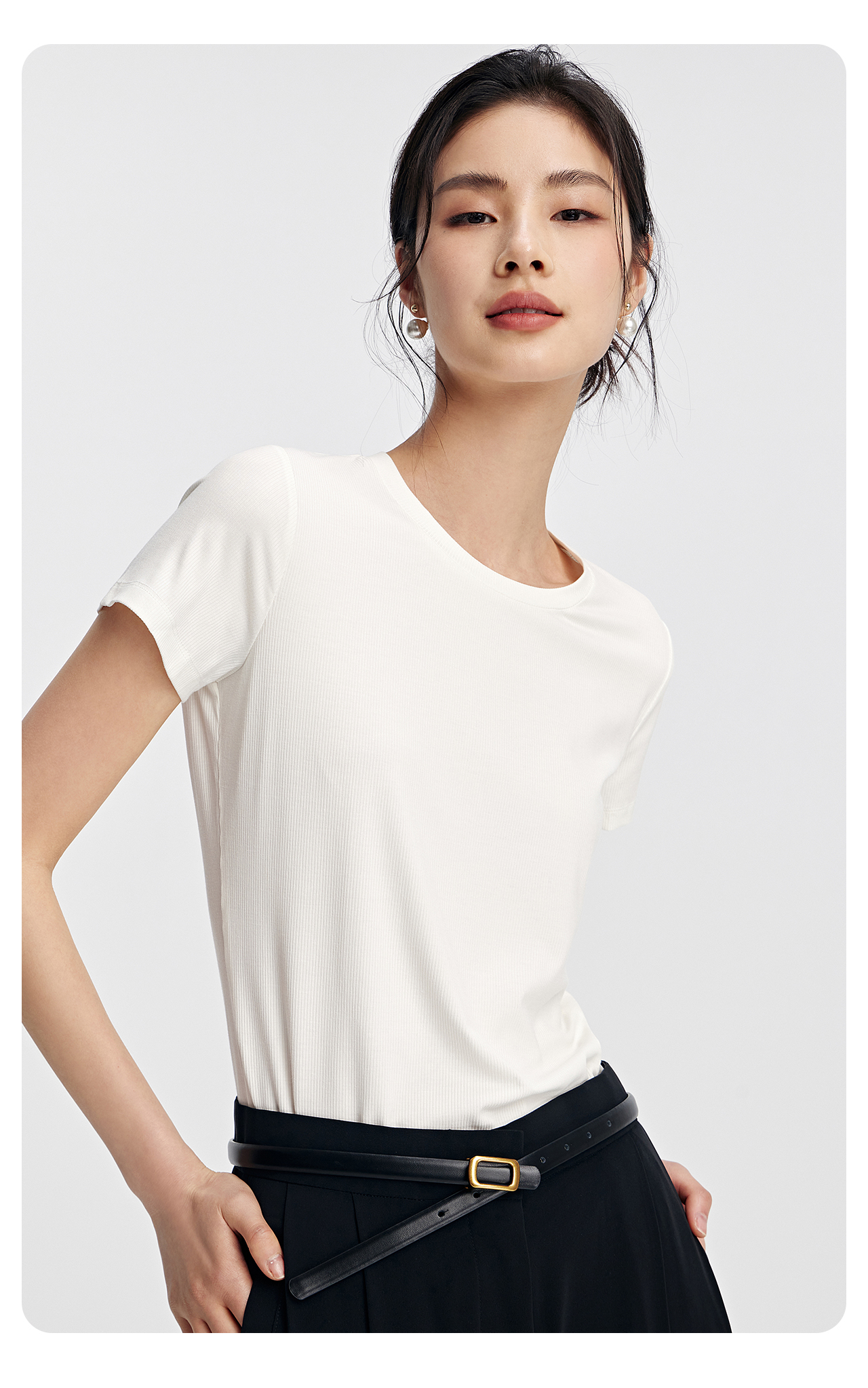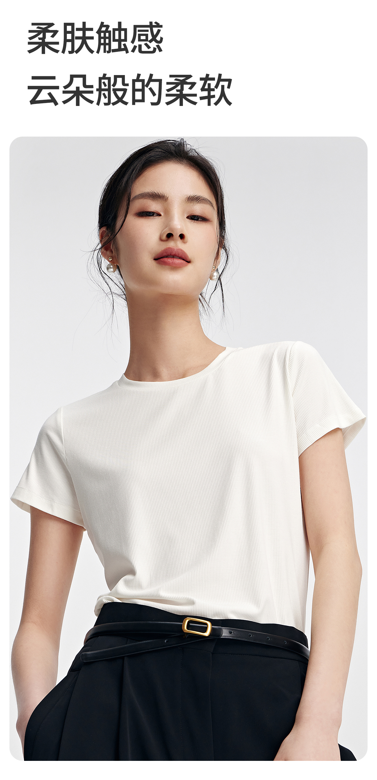 SHUKU/舒库M6云柔感柔软透气垂感圆领爽滑女款短袖T恤纯色短袖