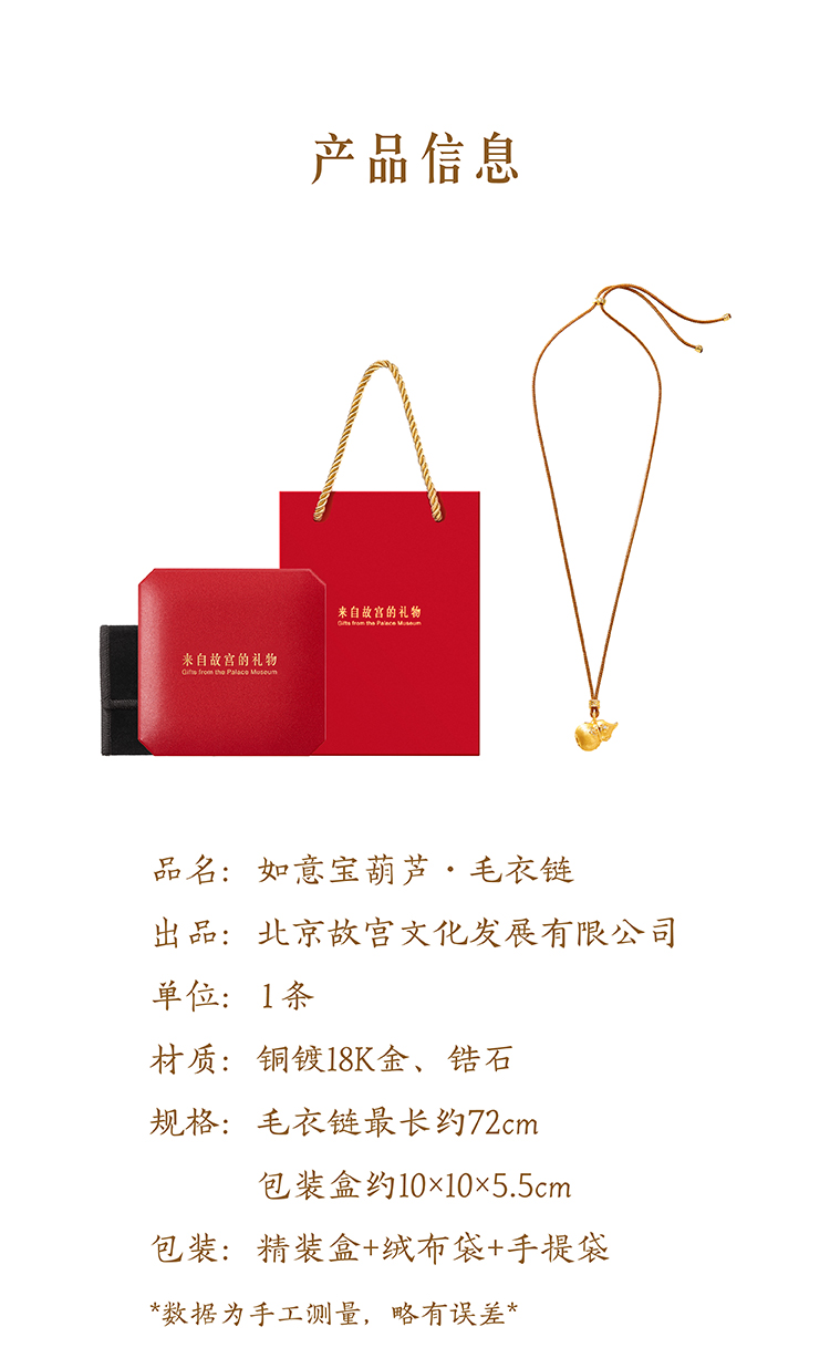 【故宫饰品】如意宝葫芦毛衣链文创吊坠项链圣诞新年本命年生日礼物