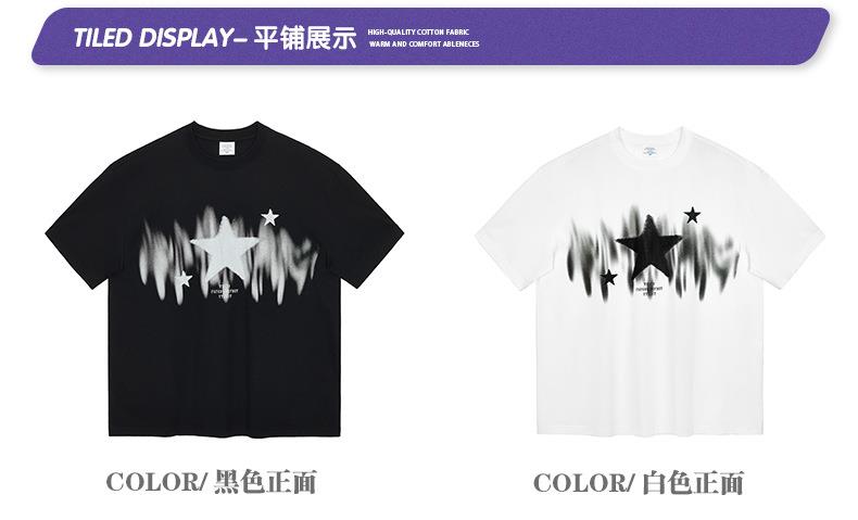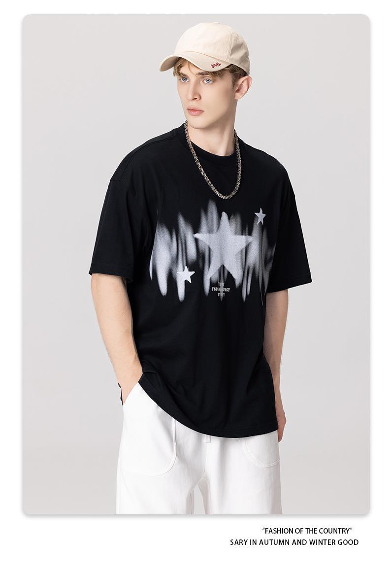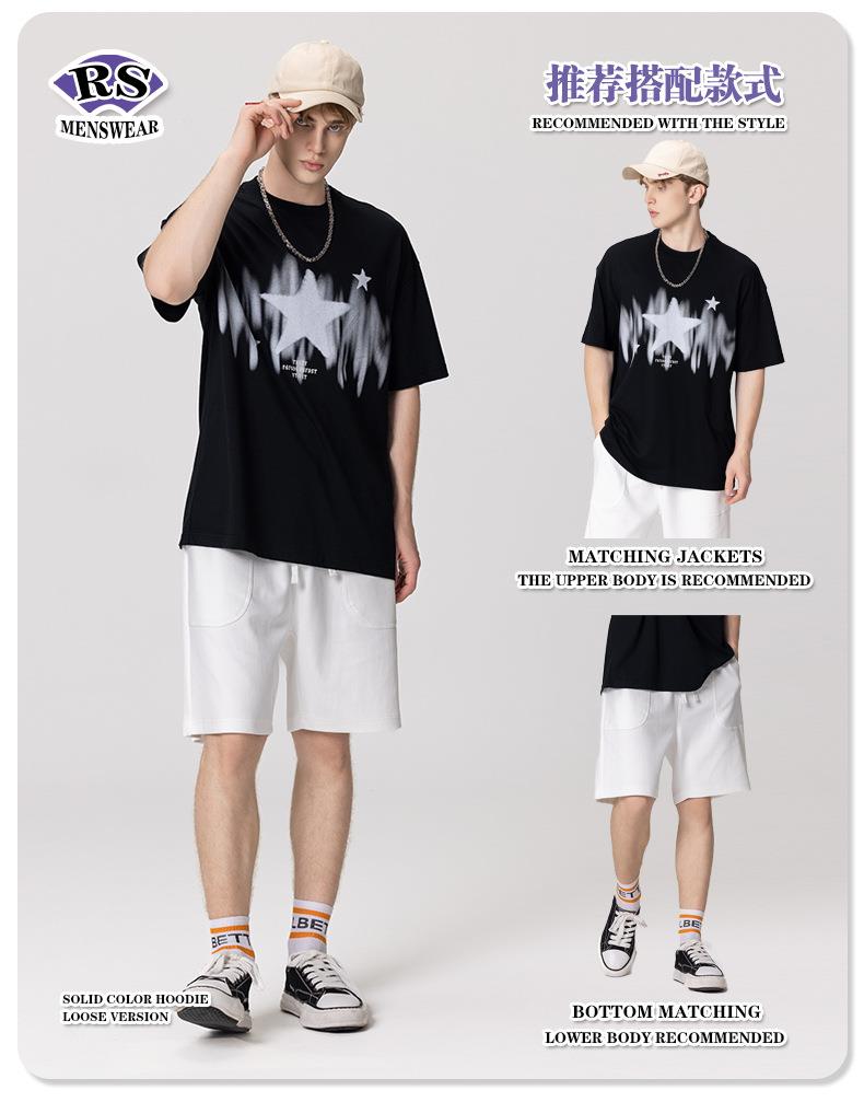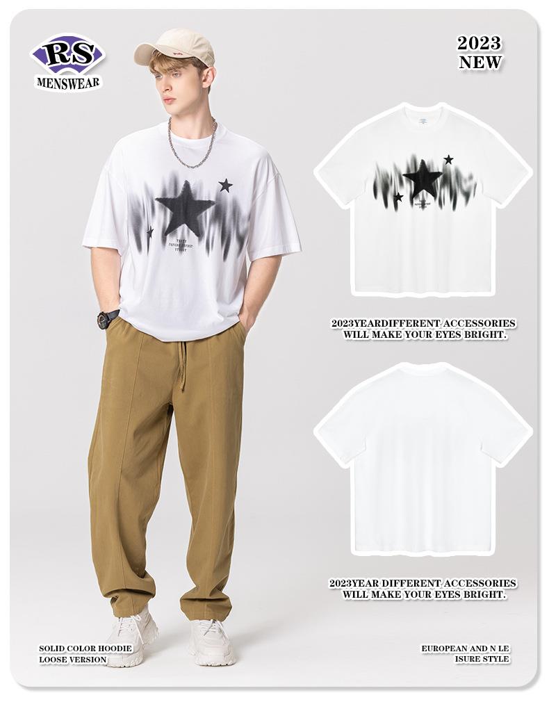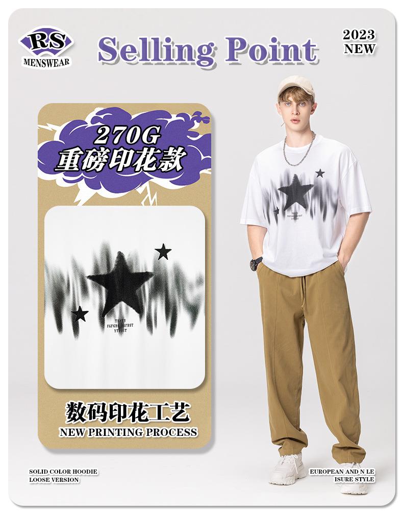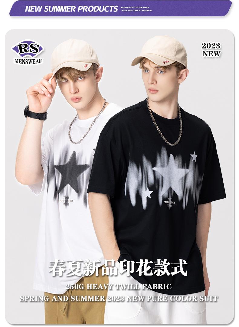 RS男装|2023春夏季270g星星渐变数码印花短袖复古街头潮牌男士T恤