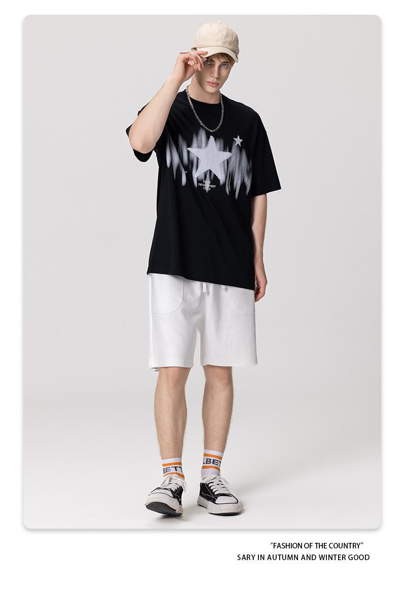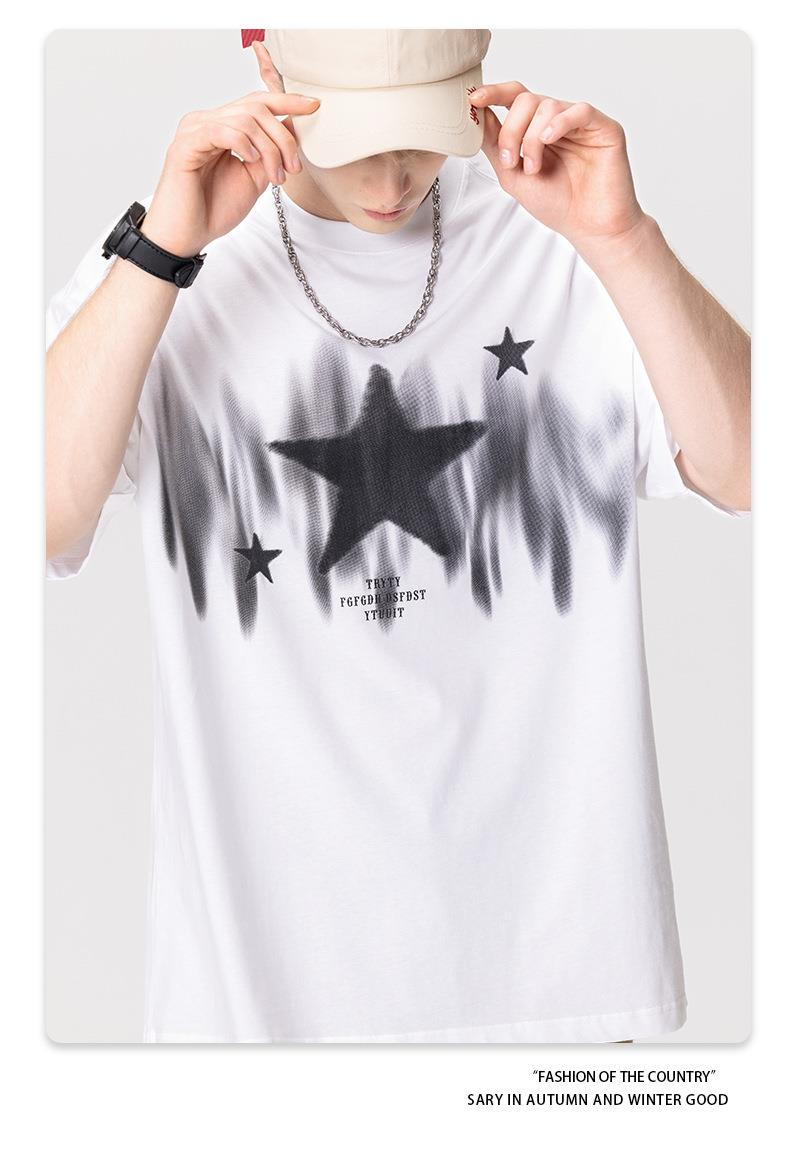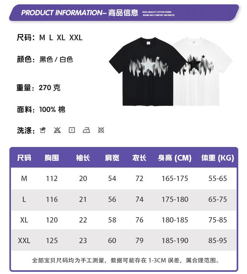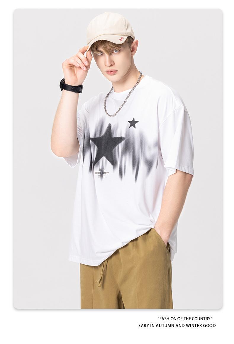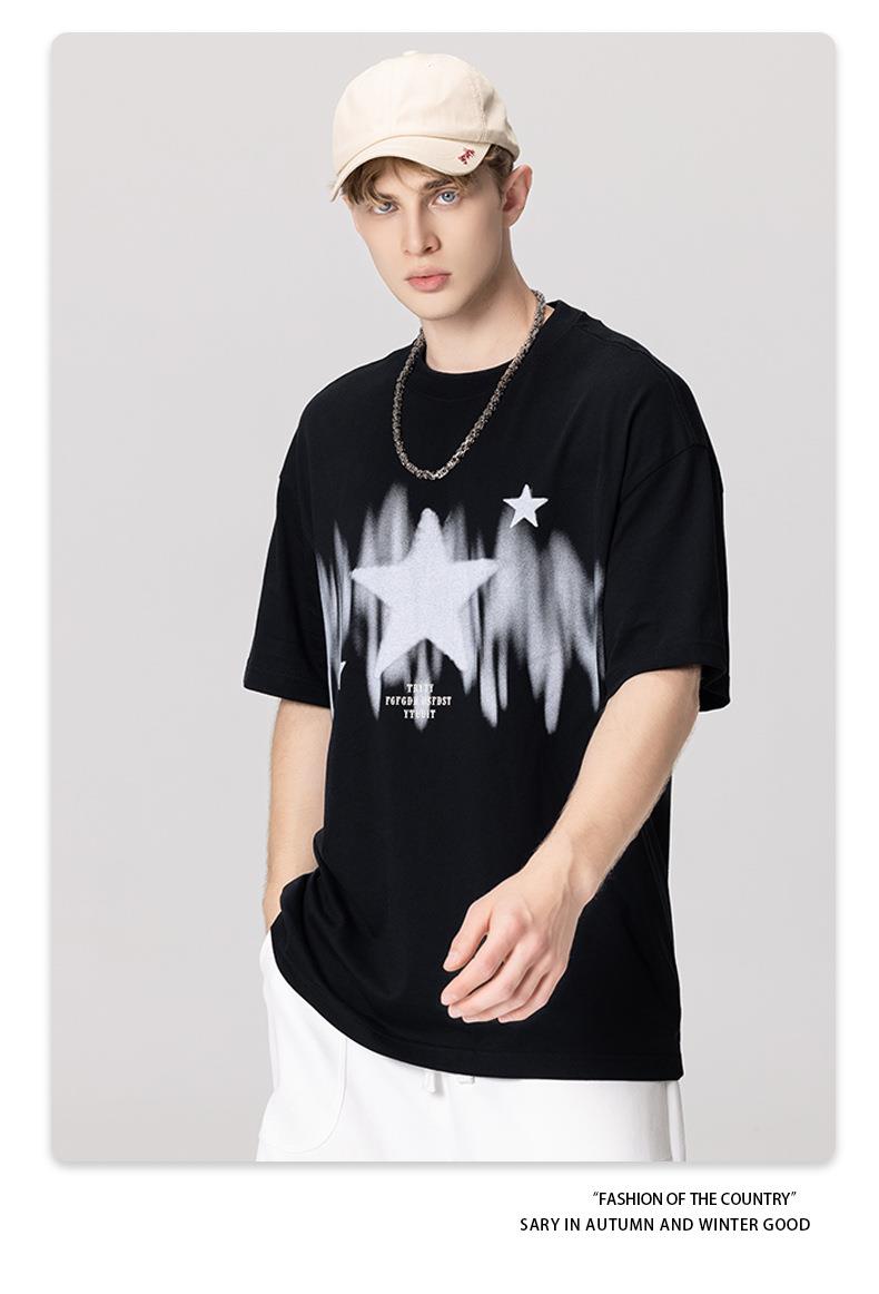 RS男装|2023春夏季270g星星渐变数码印花短袖复古街头潮牌男士T恤