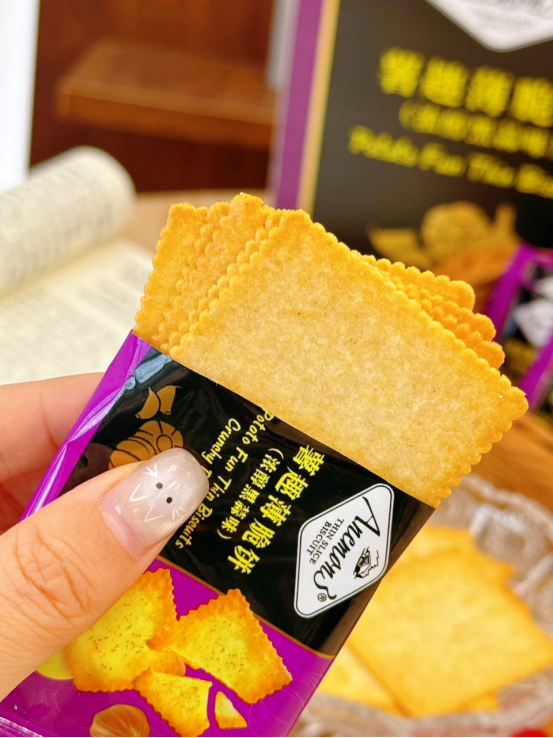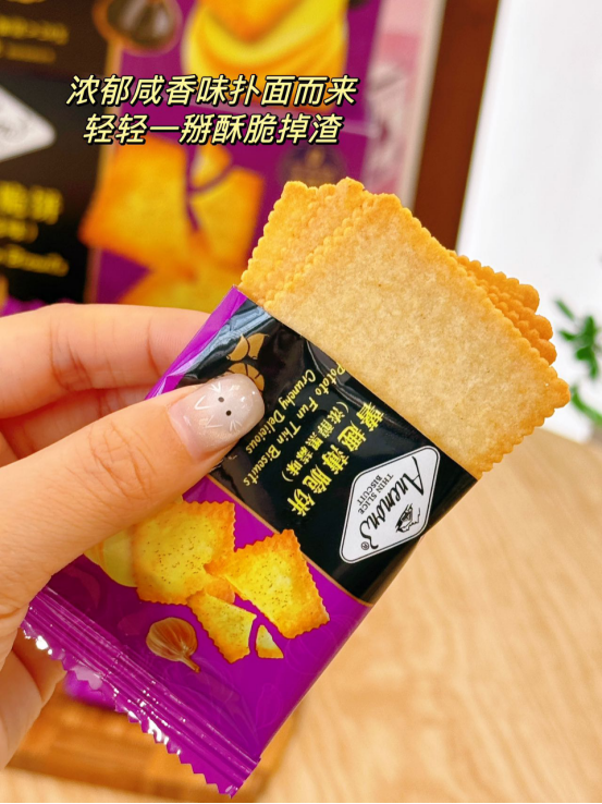 浓郁咸香味扑面而来,轻轻一掰酥脆掉渣 就跟小酥饼一样,一口咬下嘎嘣脆 越嚼越香,好吃得停不下来 真薄脆、酥掉渣,饼干天花板