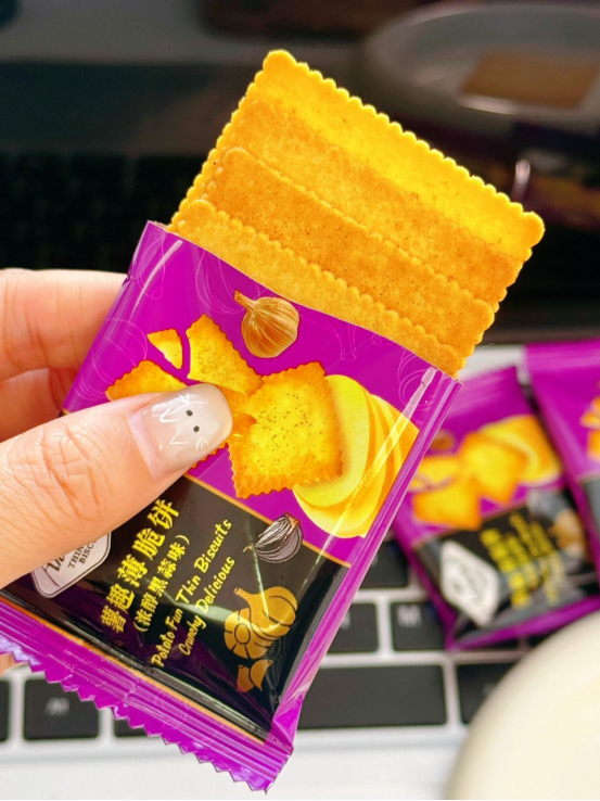 本以为会踩雷的奇葩口味… 结果第一口就瞳孔地震‼🧄 黑蒜焦香混着海盐颗粒, 后调居然渗出奶油感的回甘! 🔥像在吃咸蛋黄裹着的炭烤蒜蓉面包脆~ 男票原本嫌臭,现在偷吃还谎称“补充大蒜素”🙄