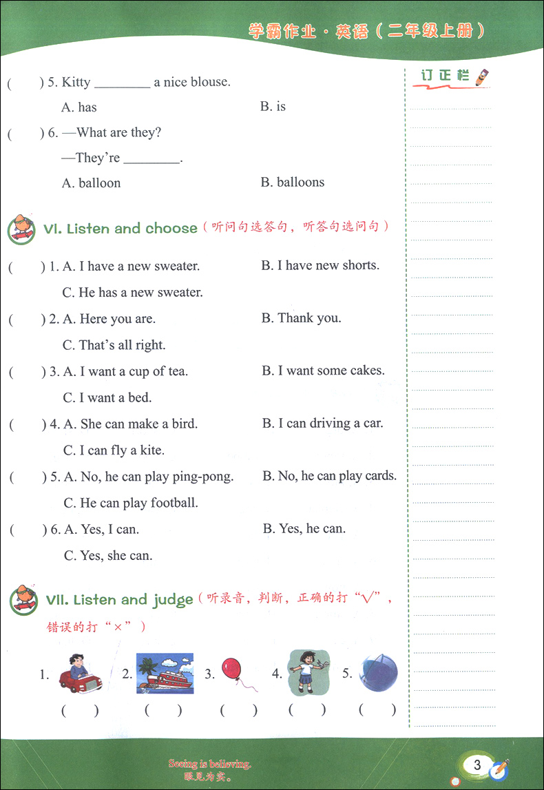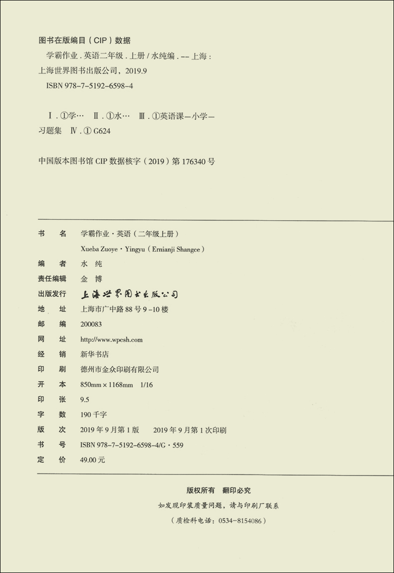 学霸作业 二年级上册/2年级第一学期 英语 含测试卷 与上海牛津版英语教材配套教辅