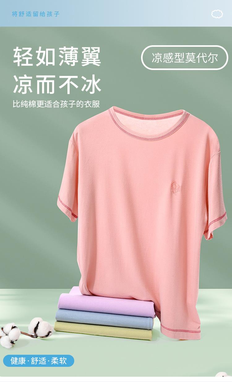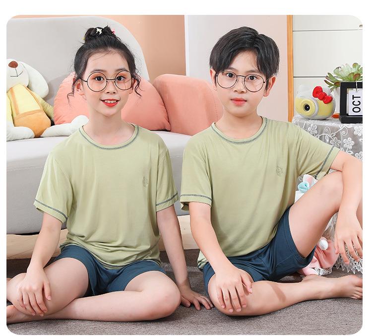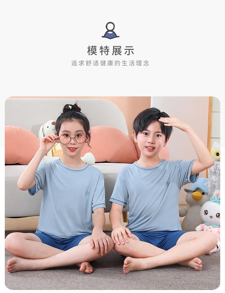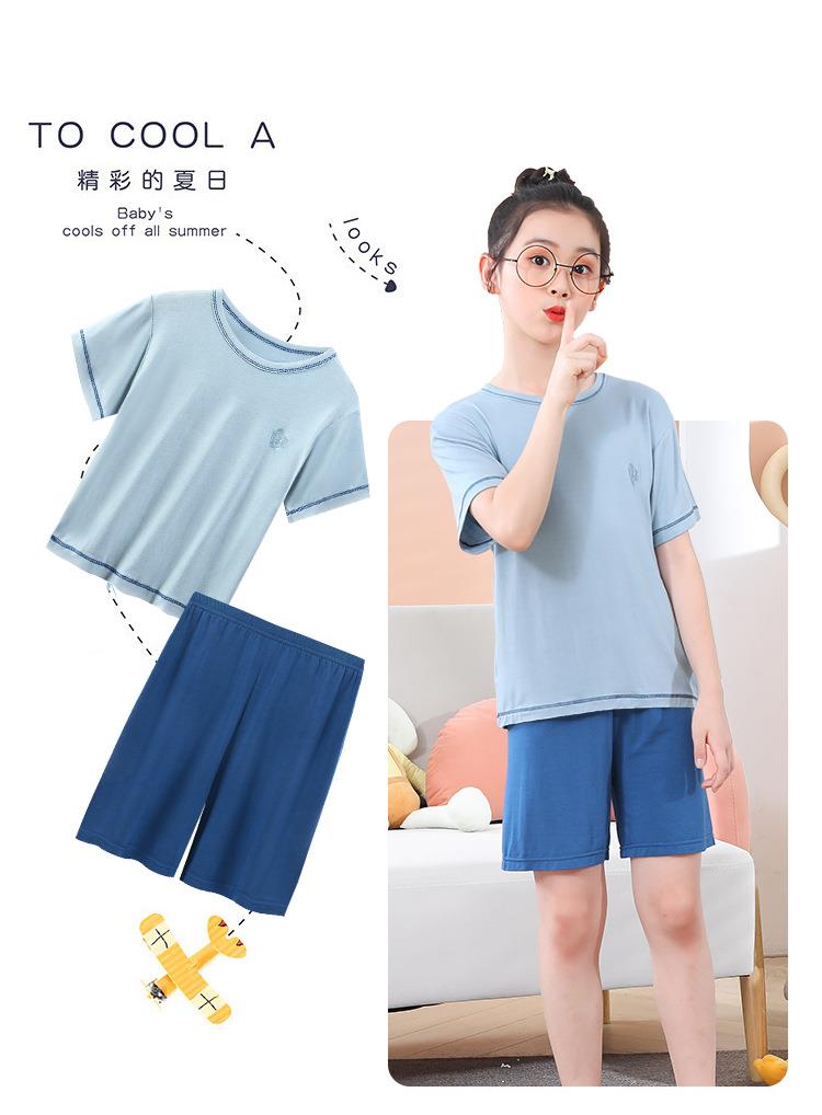 2023新款绵软夏季儿童睡衣套装中小童莫代尔短袖空调服一件代发