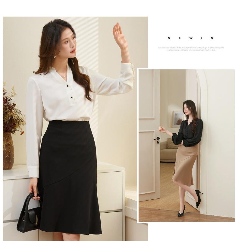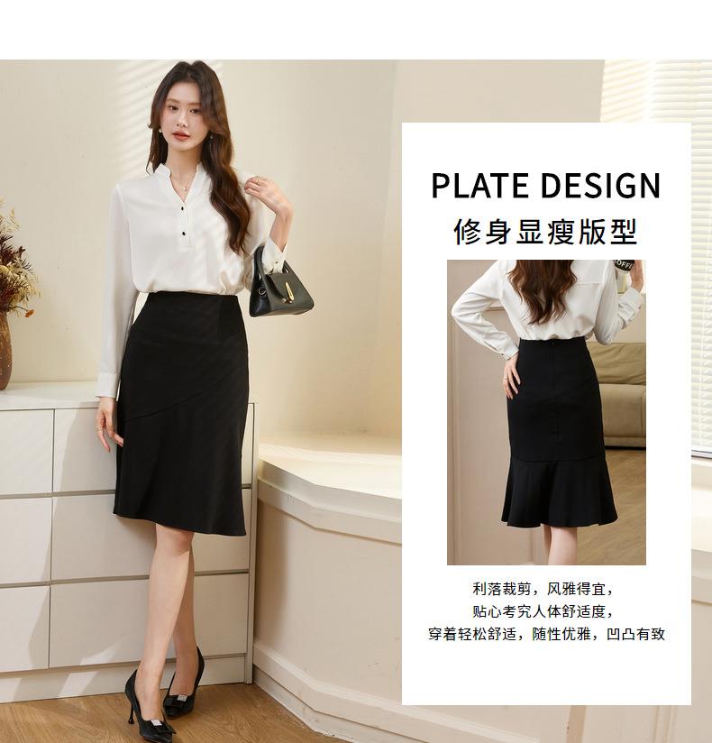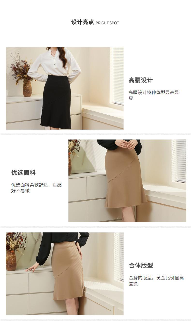 百姿 百搭基础款高腰半身裙2023秋季新款显瘦鱼尾包臀裙88611