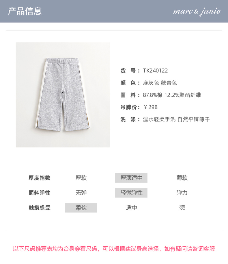 【休闲学院】马克珍妮女童超舒棉撞色喇叭裤儿童裤子春装 240122