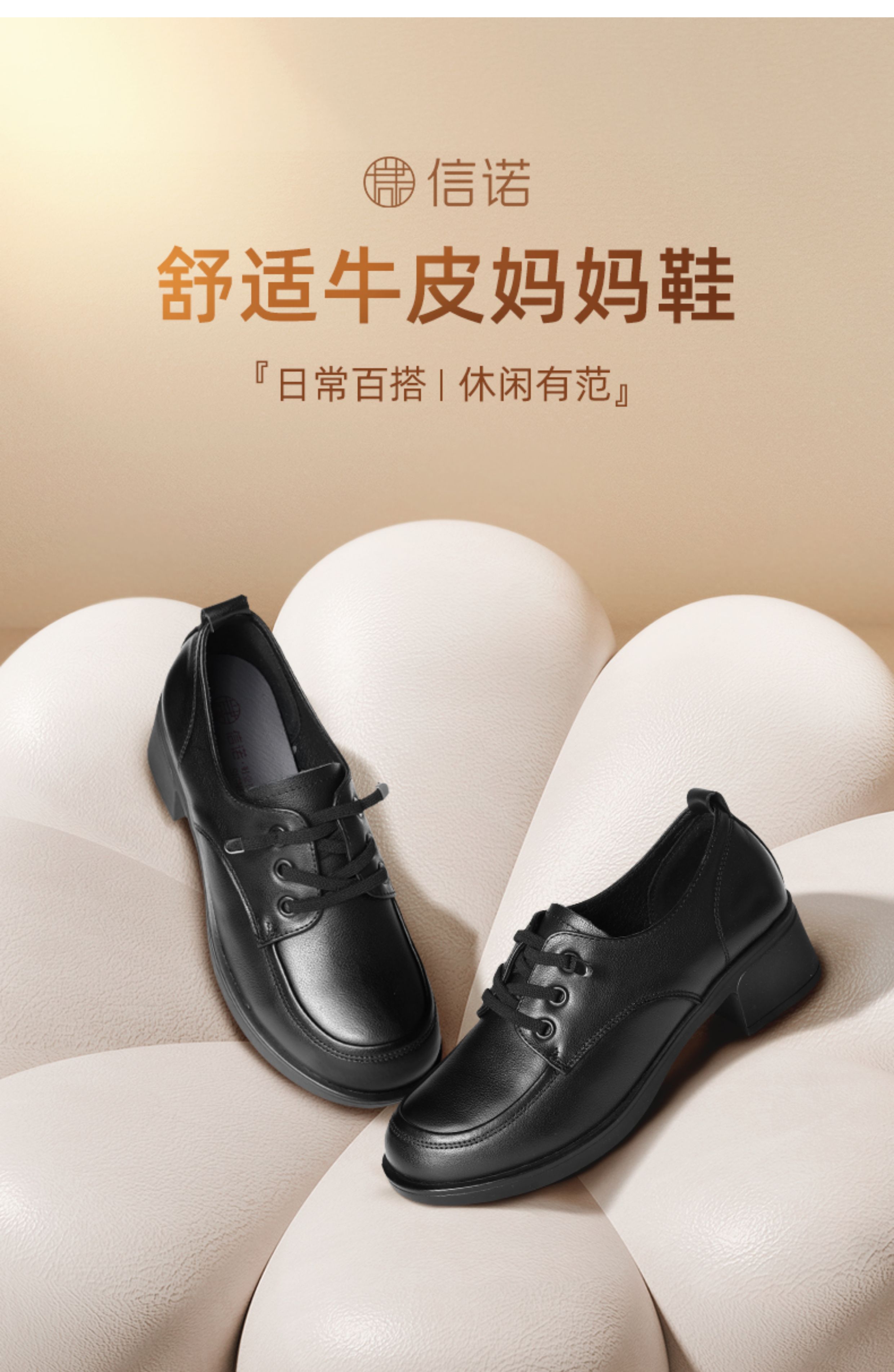 信诺百搭真皮妈妈鞋中老年舒适不累脚休闲皮鞋单鞋女2025新款秋季X5Q131-172