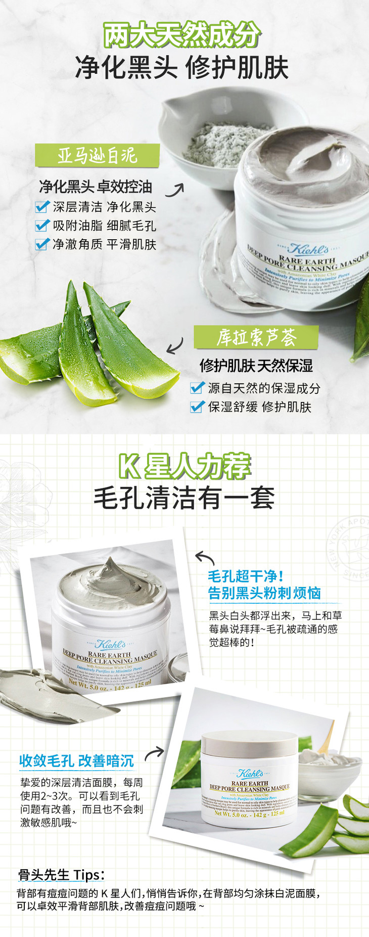 【中欧班列精选】kiehls科颜氏亚马逊白泥清洁面膜125ml HJ