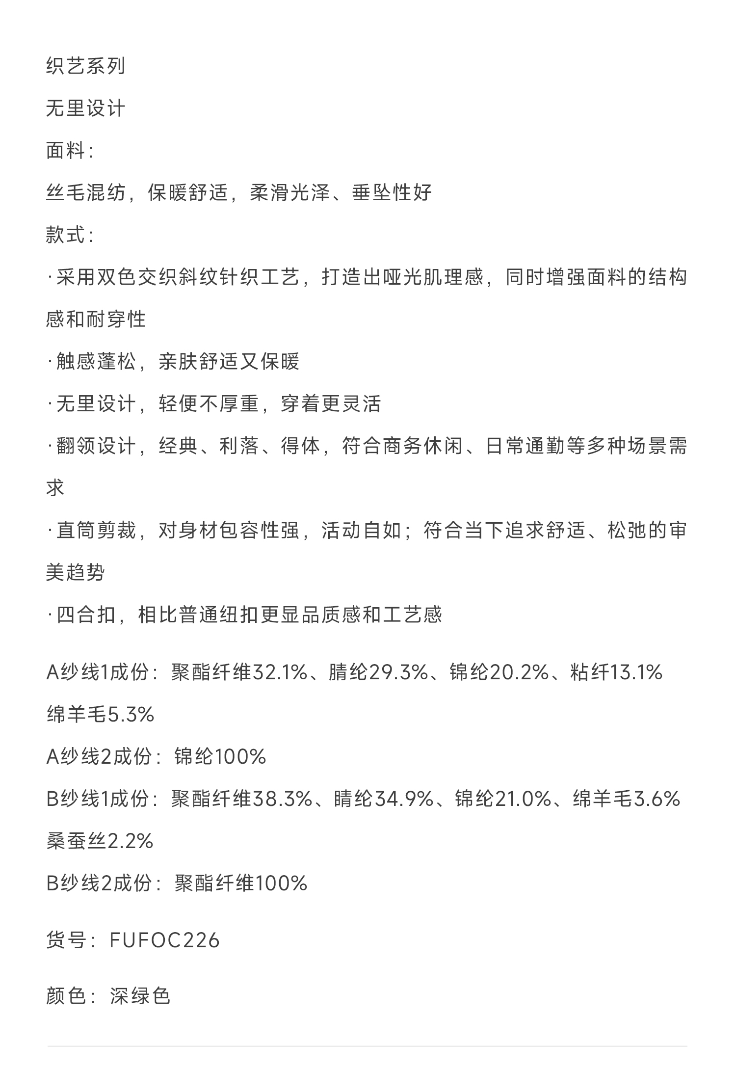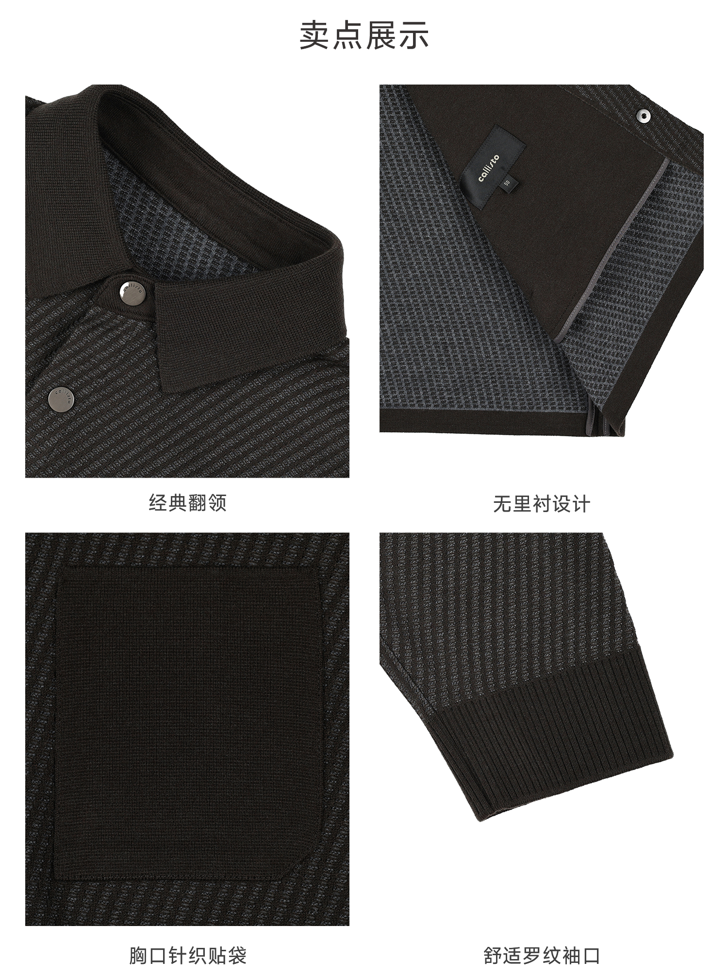 callisto深绿织艺系列经典翻领外套
