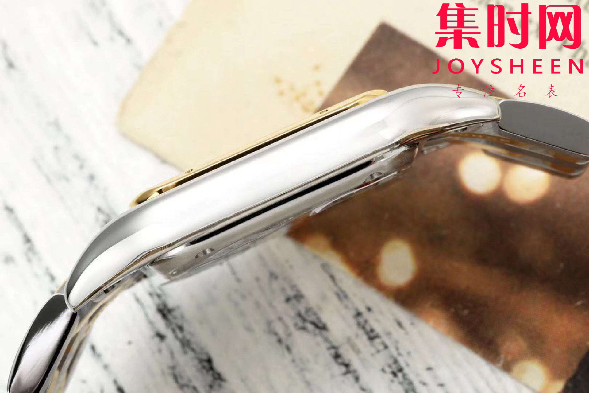 【表壳】表盘尺寸:小号27 x 37mm,方形表壳线条柔美,精美流线表耳,与表壳一体成型,魅惑动人。是Panthère猎豹所传达的美学风格。
