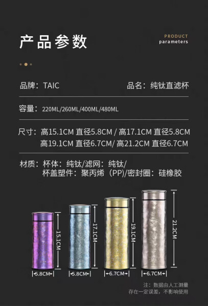 TAIC太可钛度钛杯身杯子纯钛保温杯大容量水杯带茶漏男女士情人节礼物