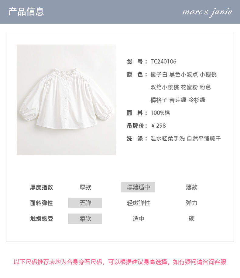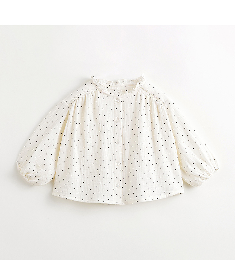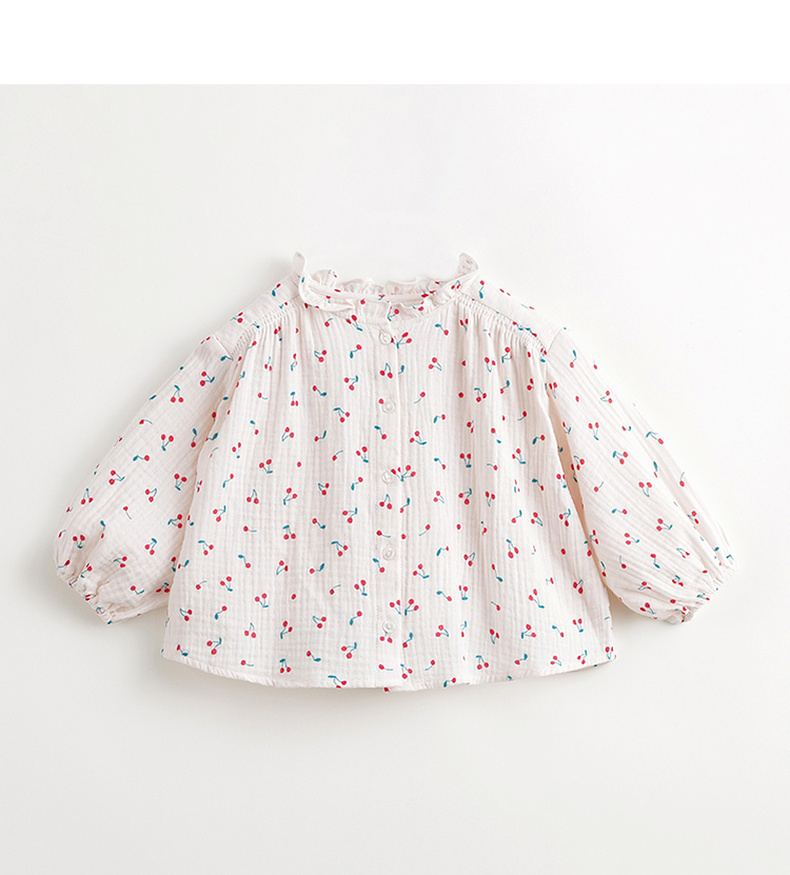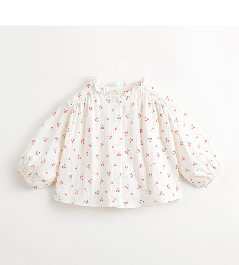 马克珍妮女童花边立领满印衬衫儿童纯棉衬衣上衣春装新款240106