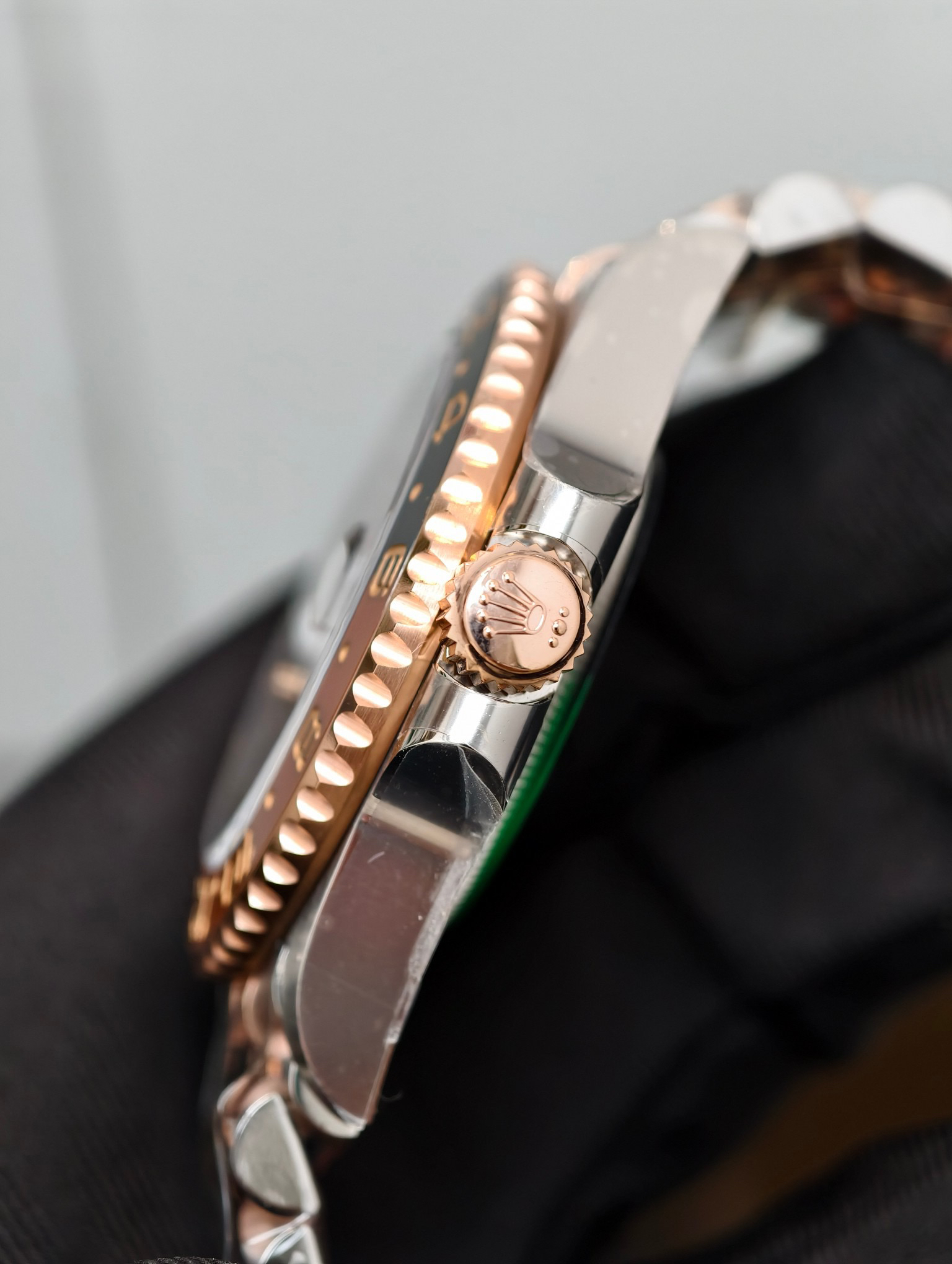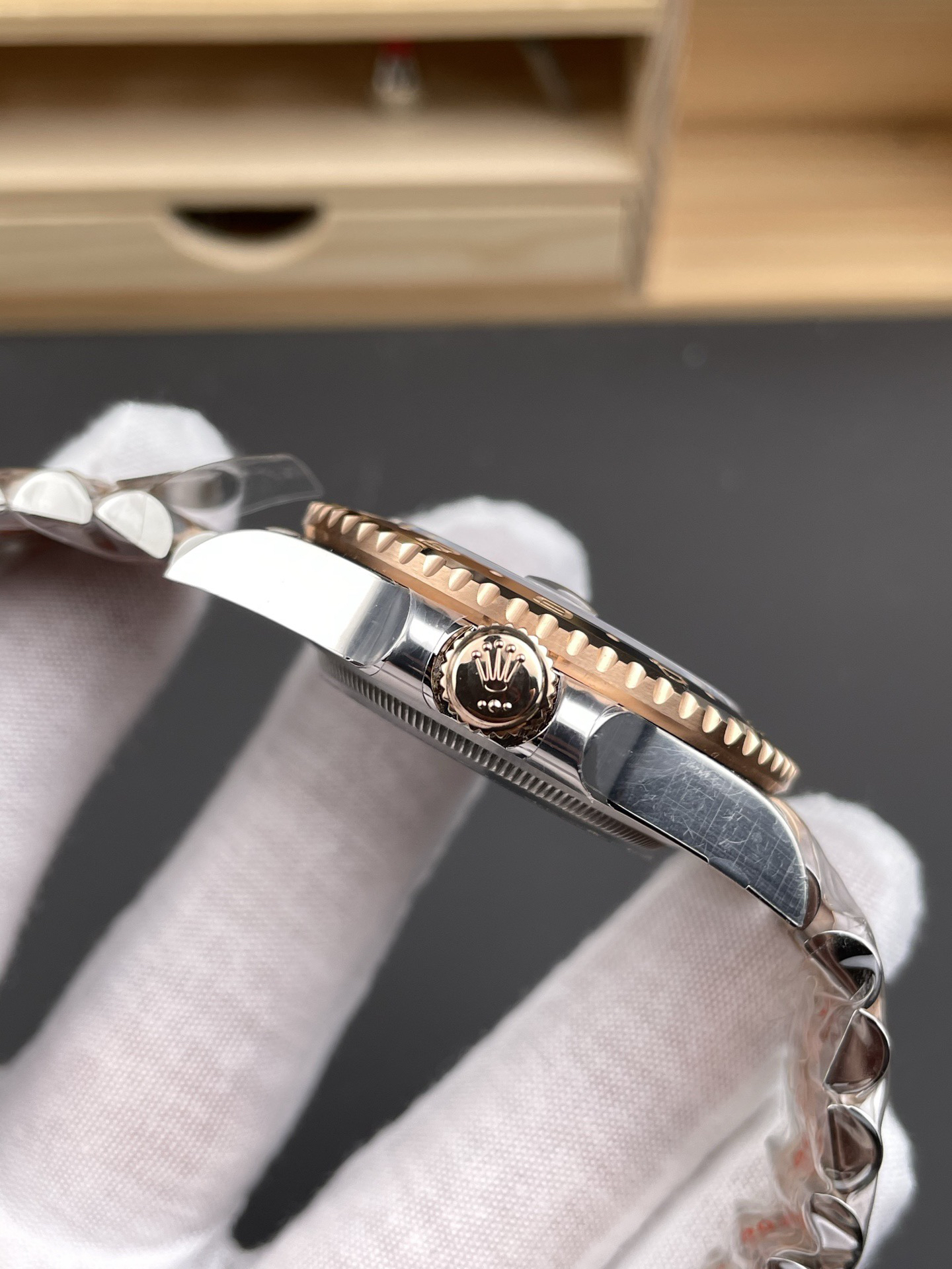 Bezel: The genuine ceramic bezel adopts high-precision high-temperature firing and splicing technology, as well as laser engraved neat dual time zone scales, which are filled with platinum plating to highlight elegance and luxury; The rotation of the rim has excellent hand feel, and the jerky feeling is constantly modified to fully synchronize with the original feel