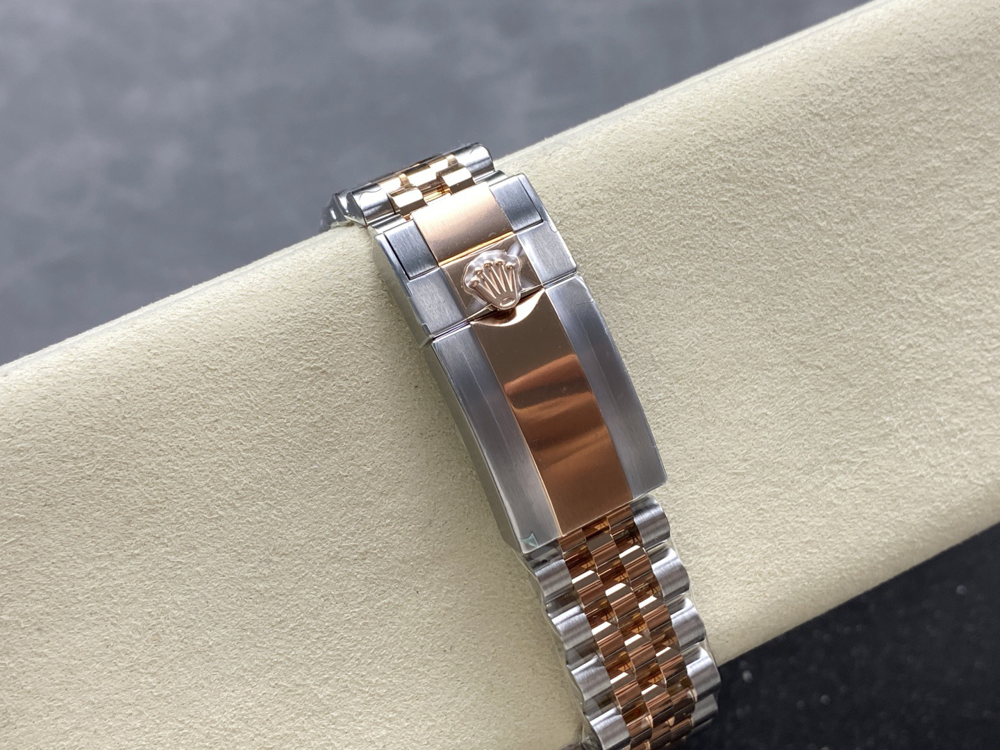 表扣:沿用经典折叠表扣,皇冠部分5爪的底纹,在保持外观形状平整且立体的情况下,底纹做到了亮光