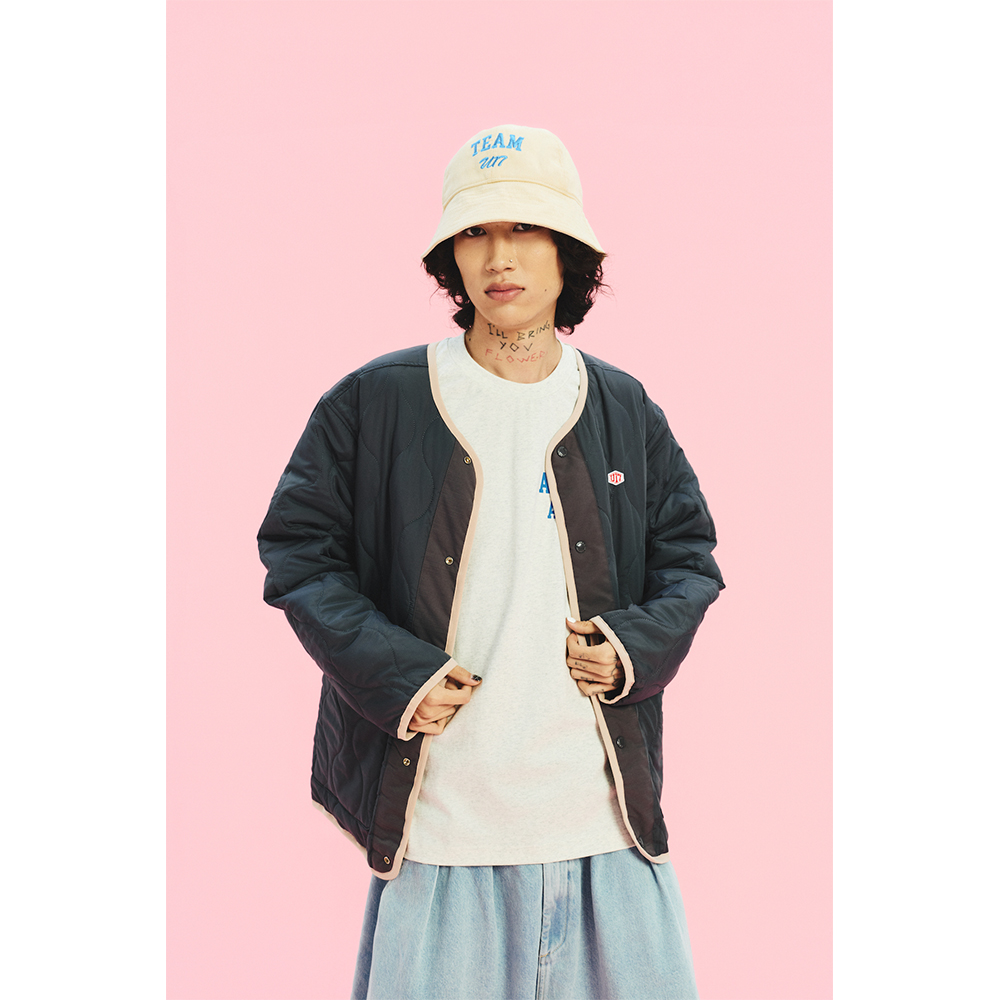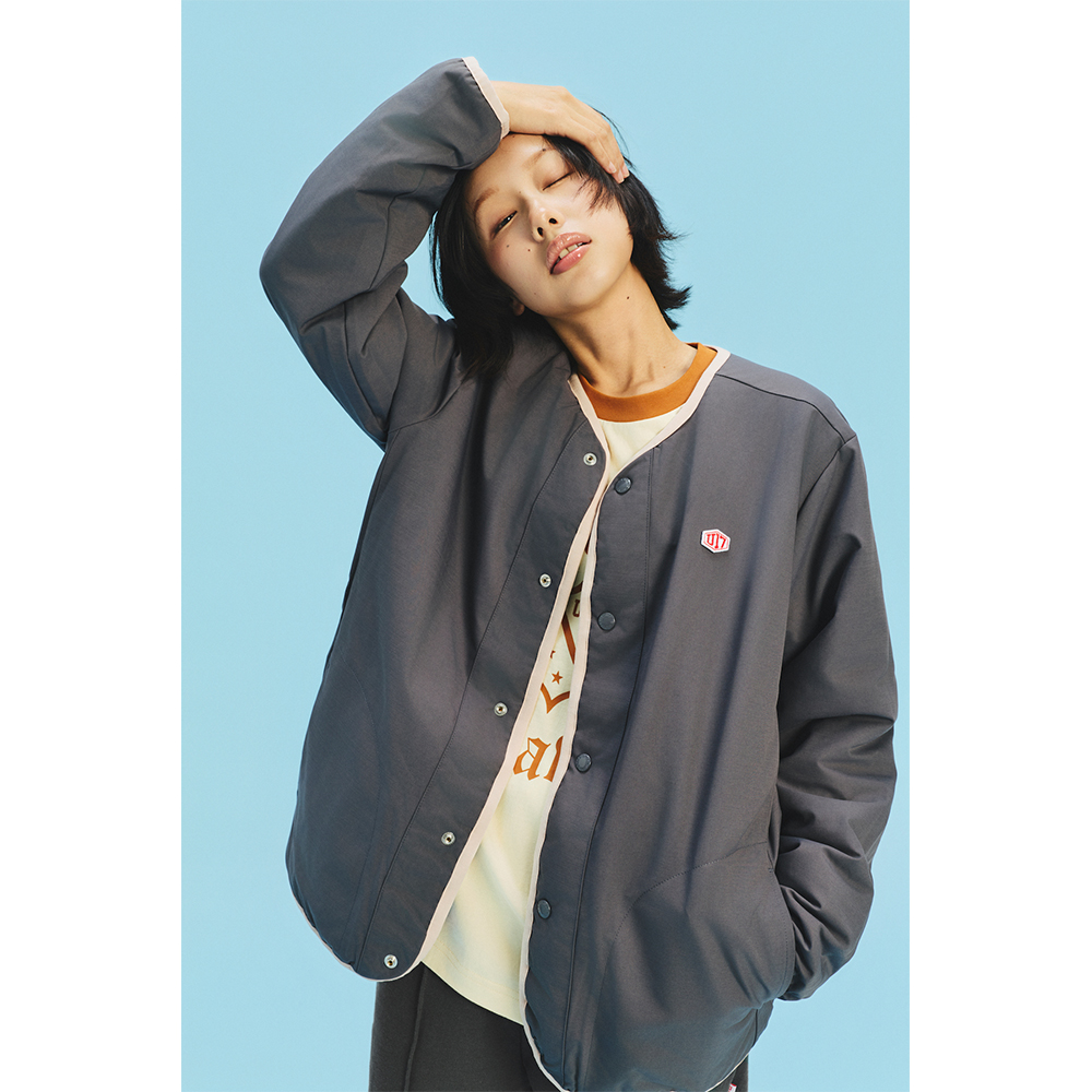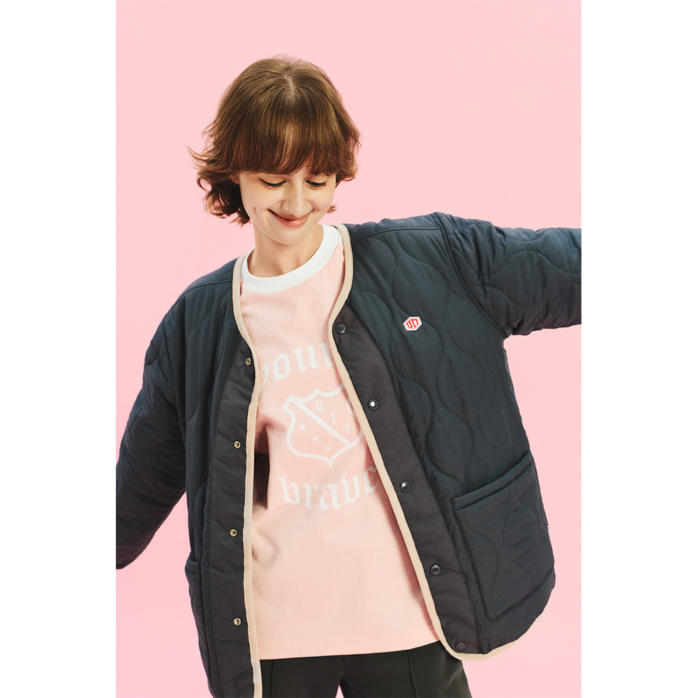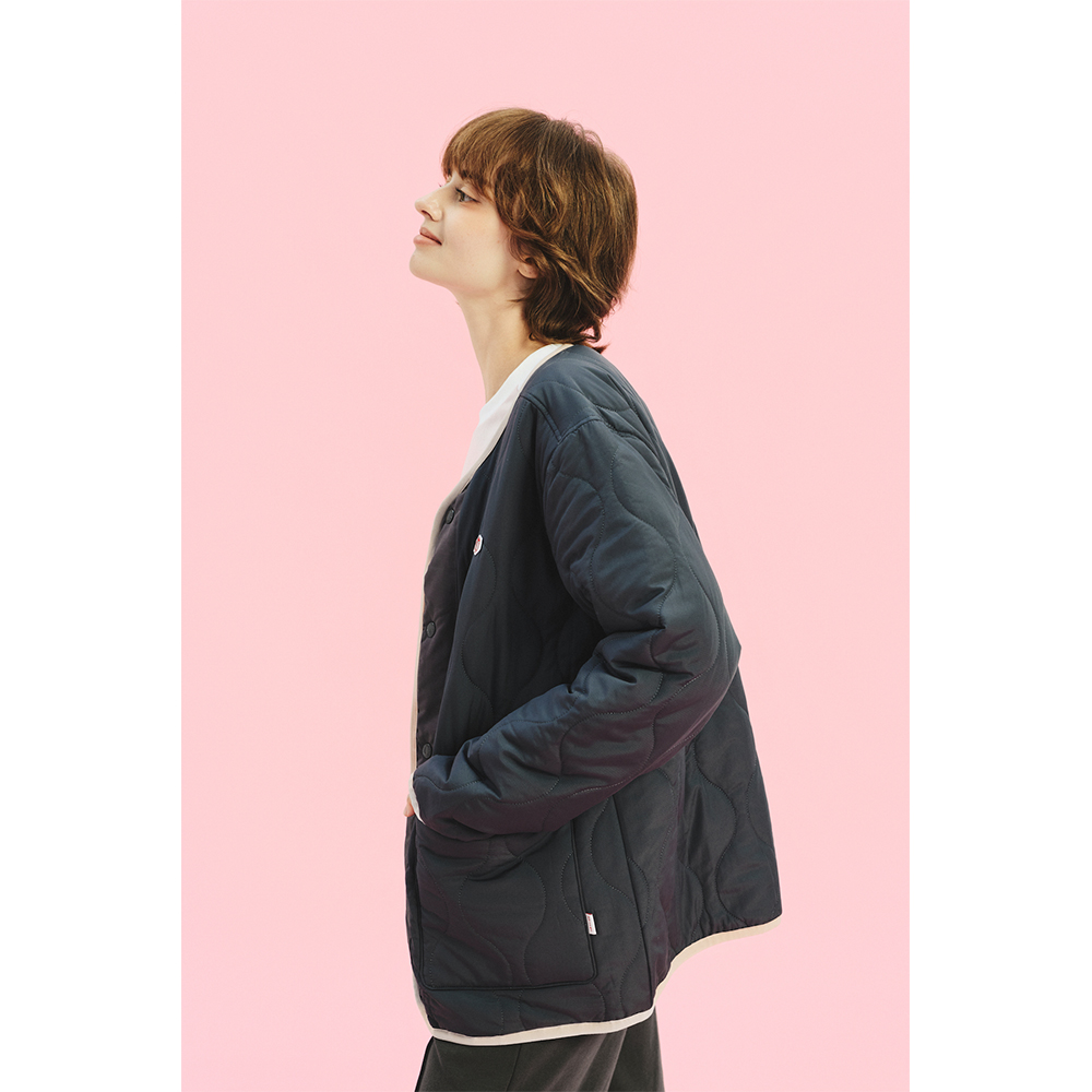 U17 绗缝葫芦格双面穿印花棉服 深灰色