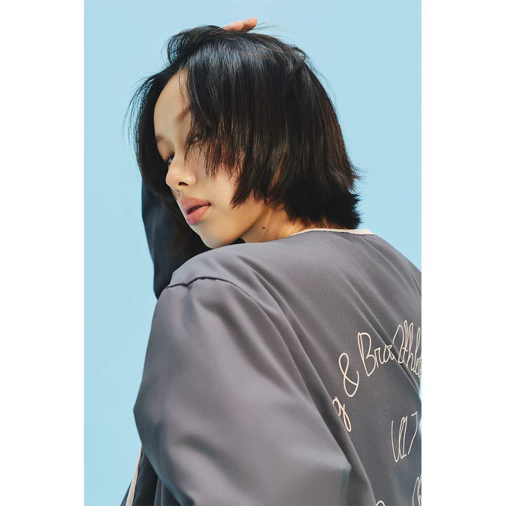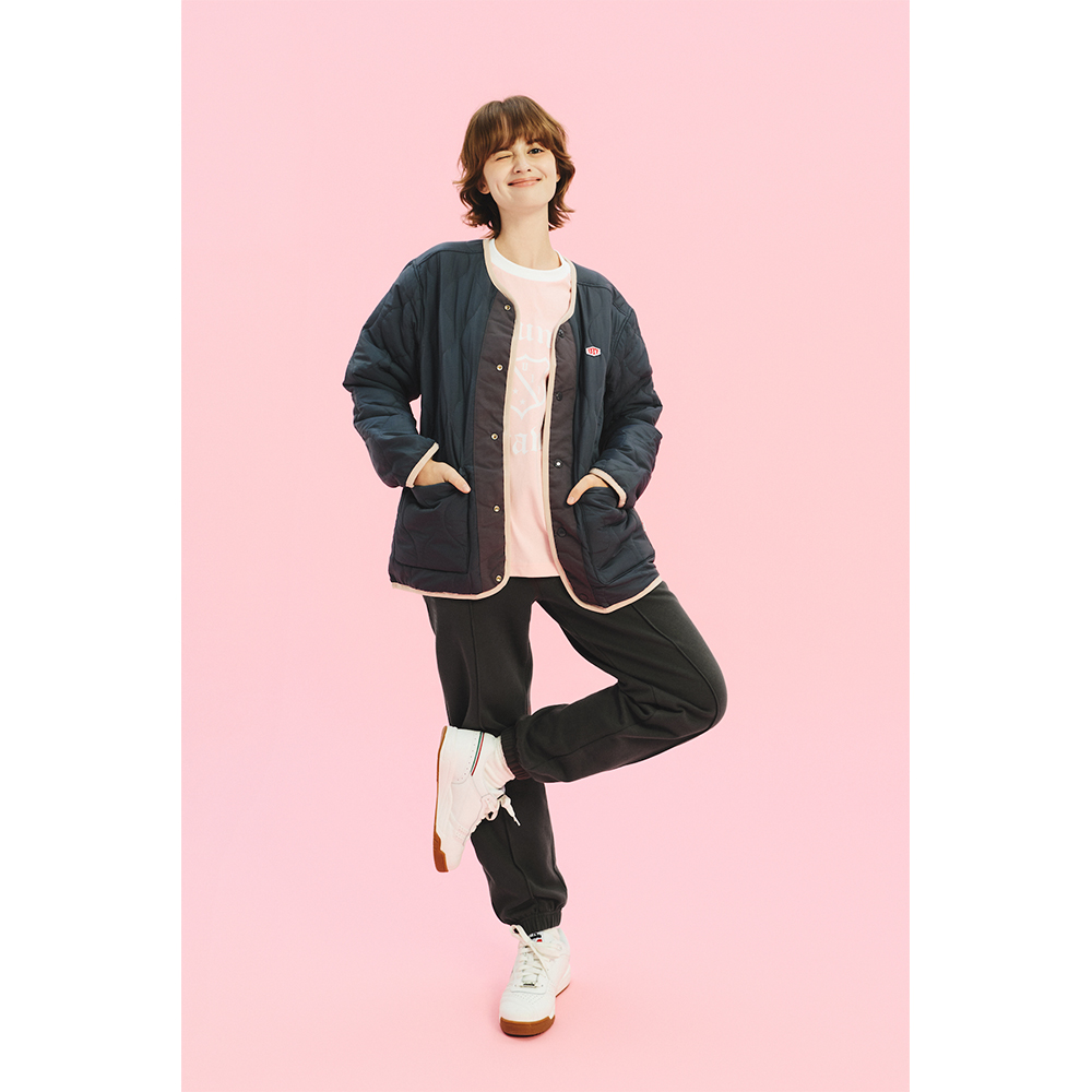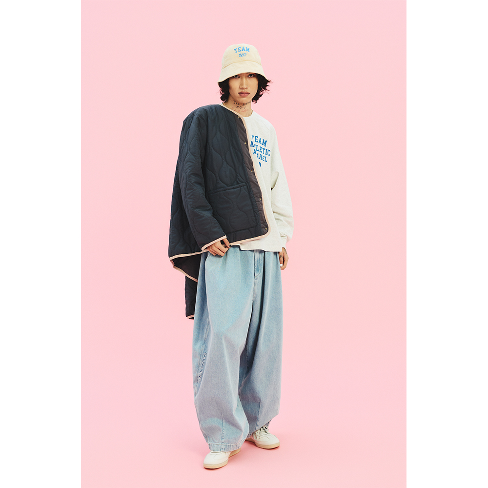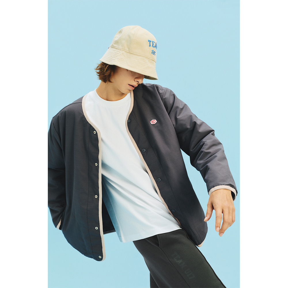 U17 绗缝葫芦格双面穿印花棉服 深灰色
