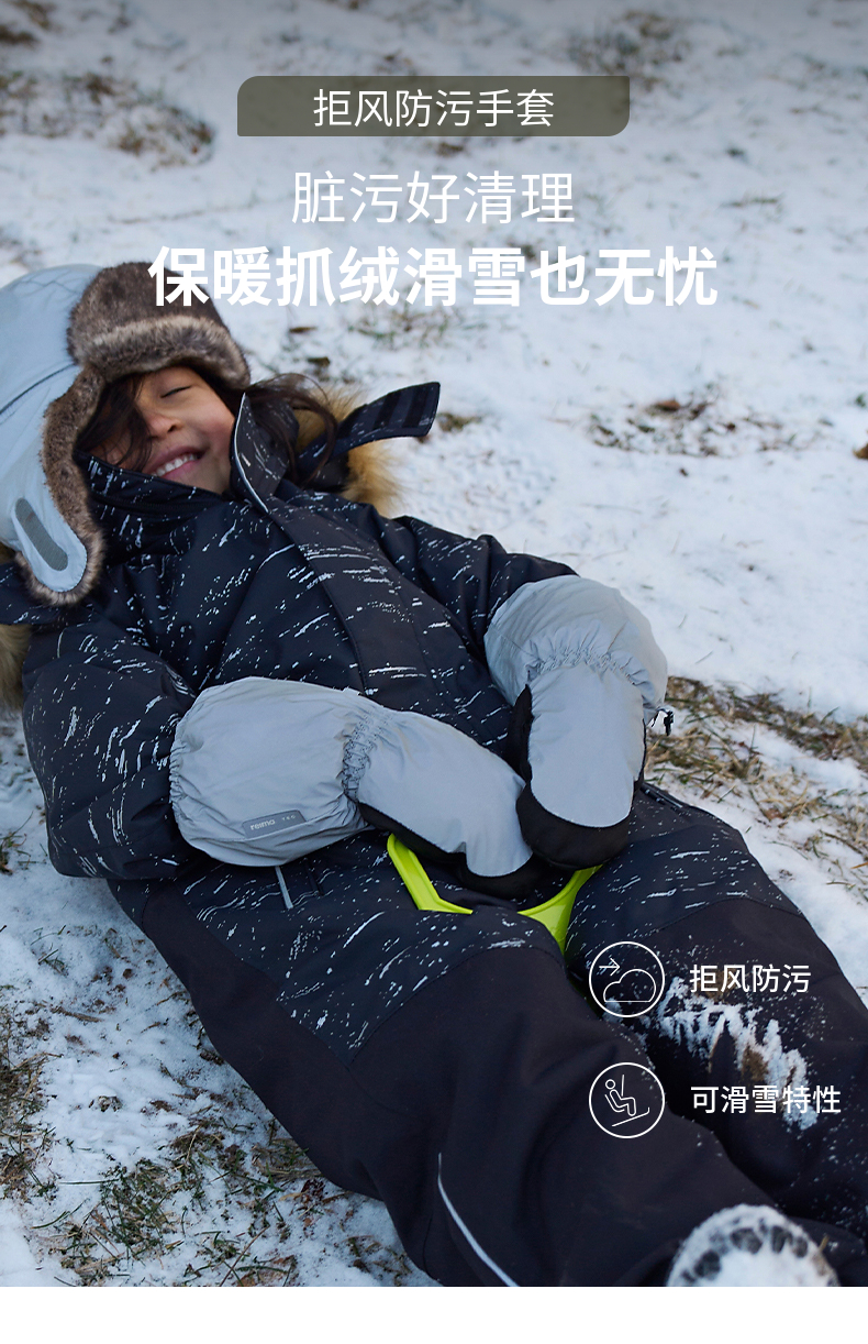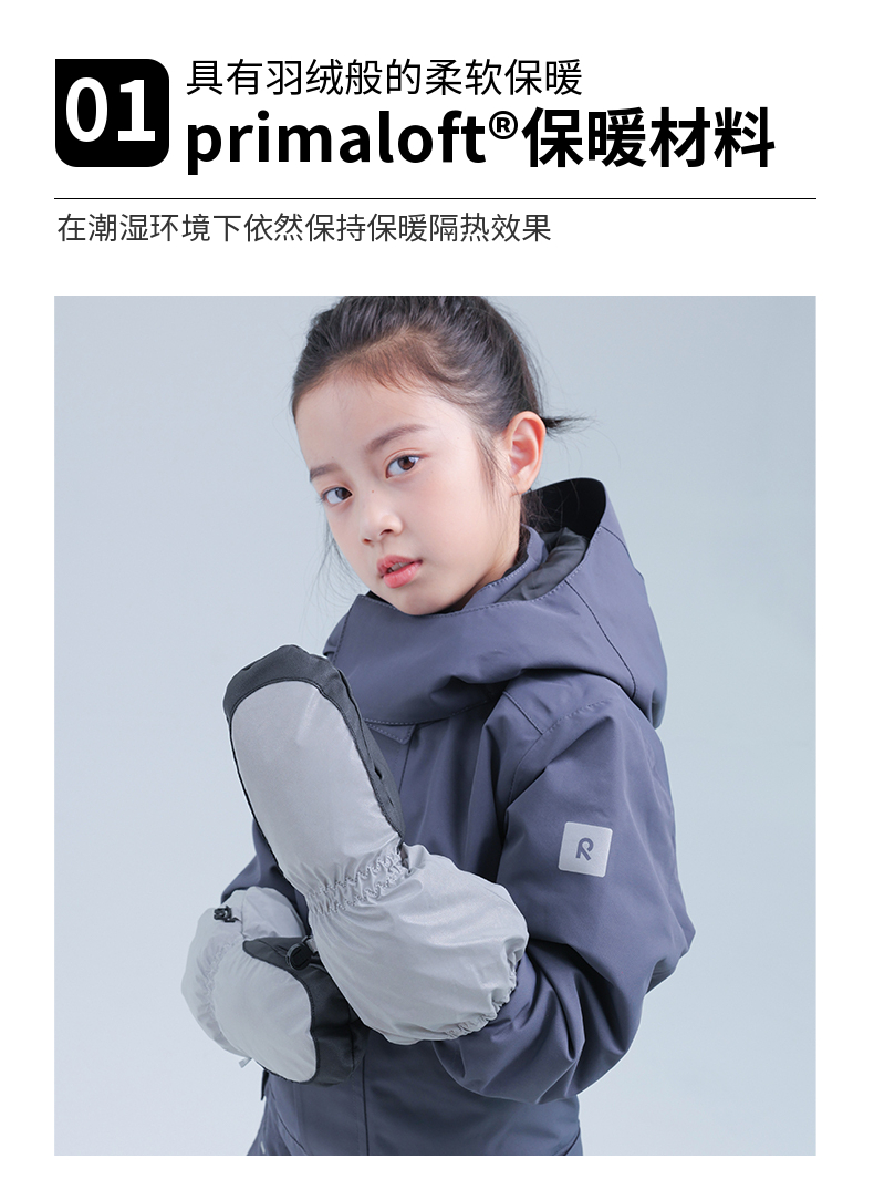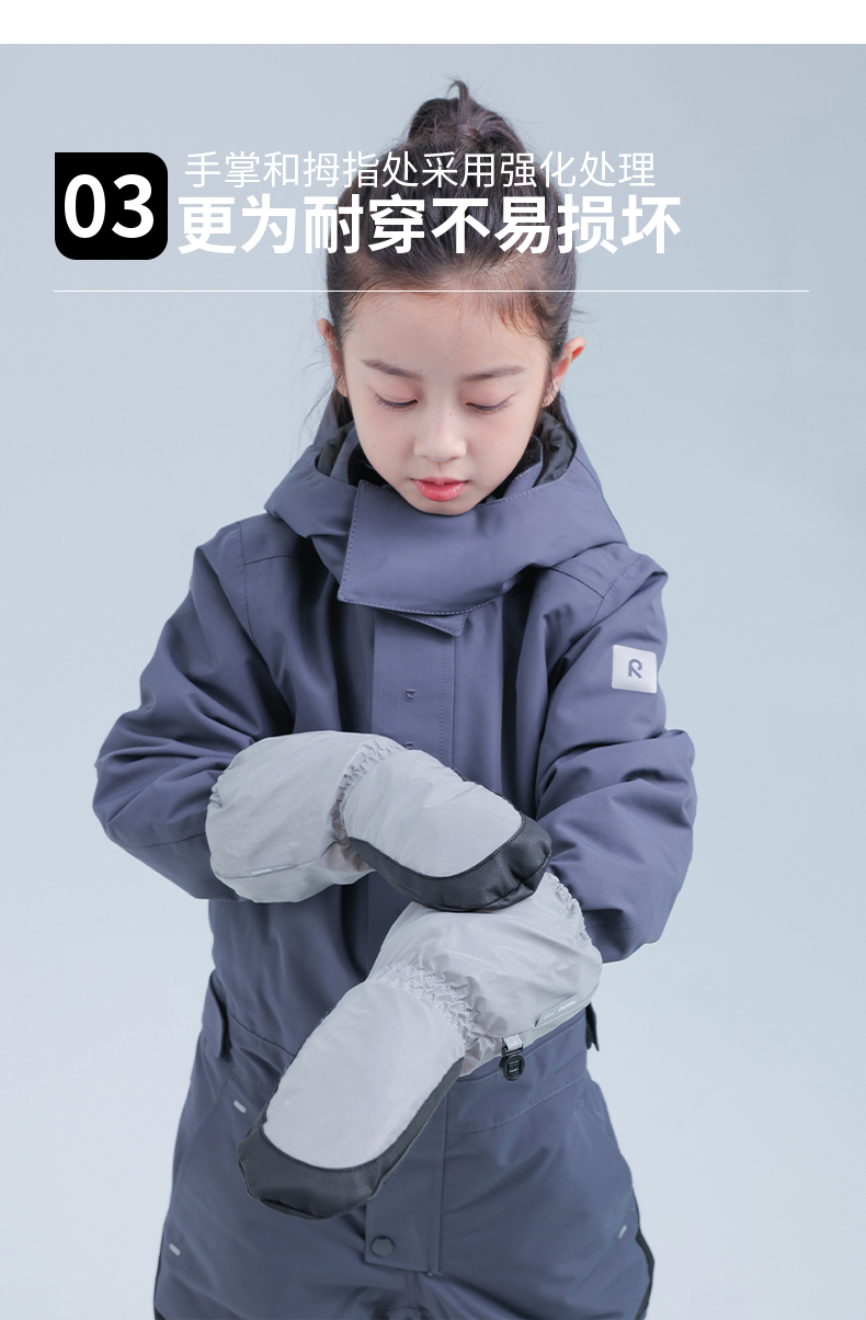 reima男女儿童户外连指手套大童冬季新款抓绒反光保暖耐磨