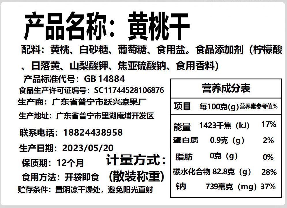 新货黄桃干500g包邮每日果干果脯蜜饯零食散装水果干桃子肉10g