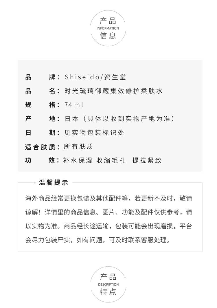 Shiseido资生堂时光琉璃御藏臻萃水乳二合一柔肤水74ml大中样