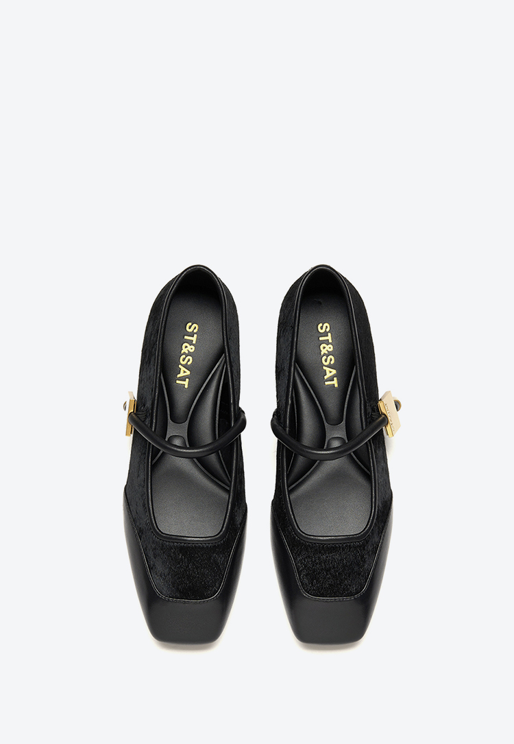 星期六金属扣方头一字带粗跟凉鞋FB32115028