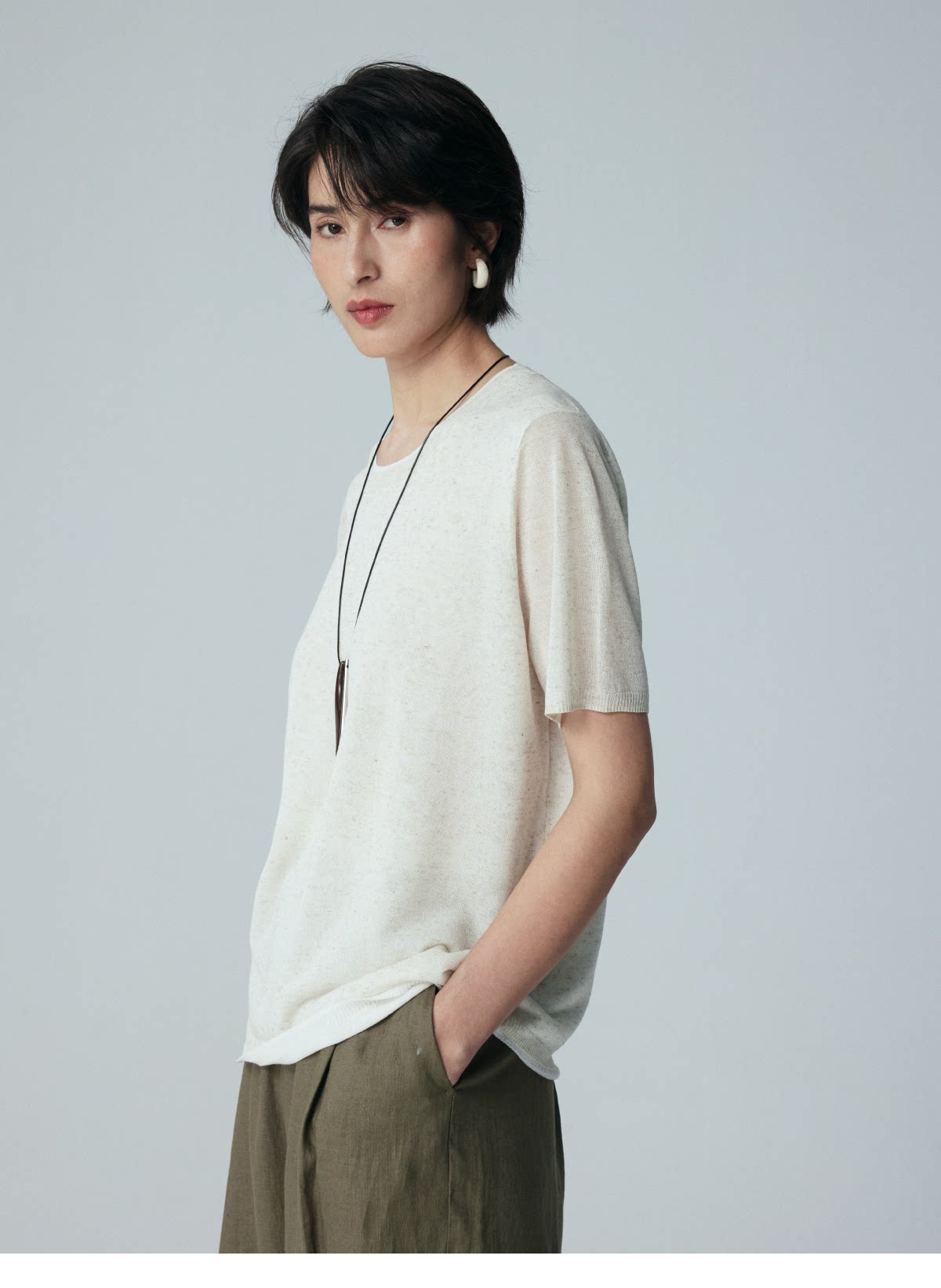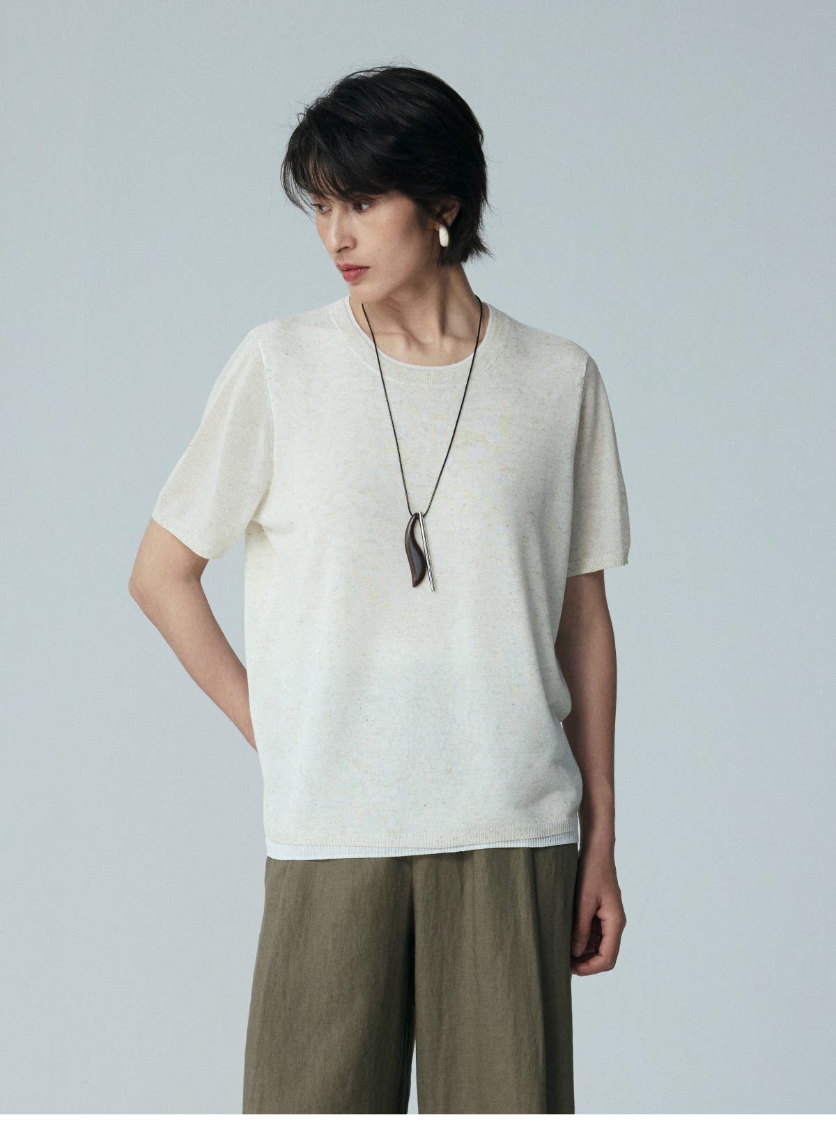 LIYIHAN 2026夏季新款亚麻短袖T恤女白色宽松小众设计感针织上衣