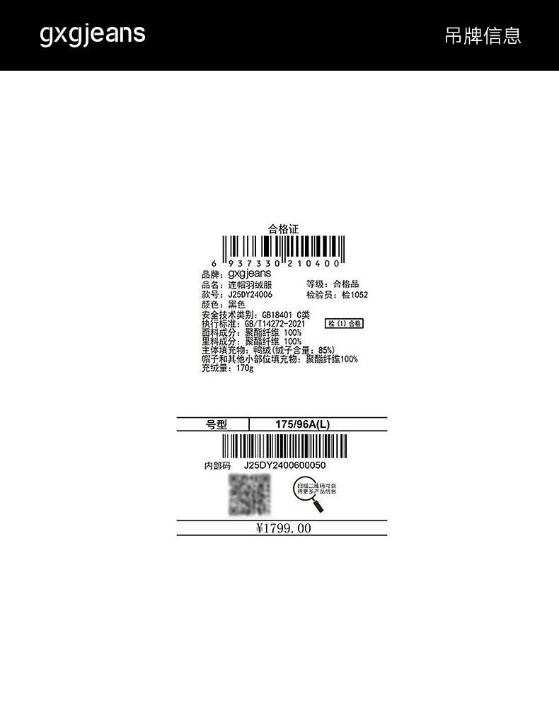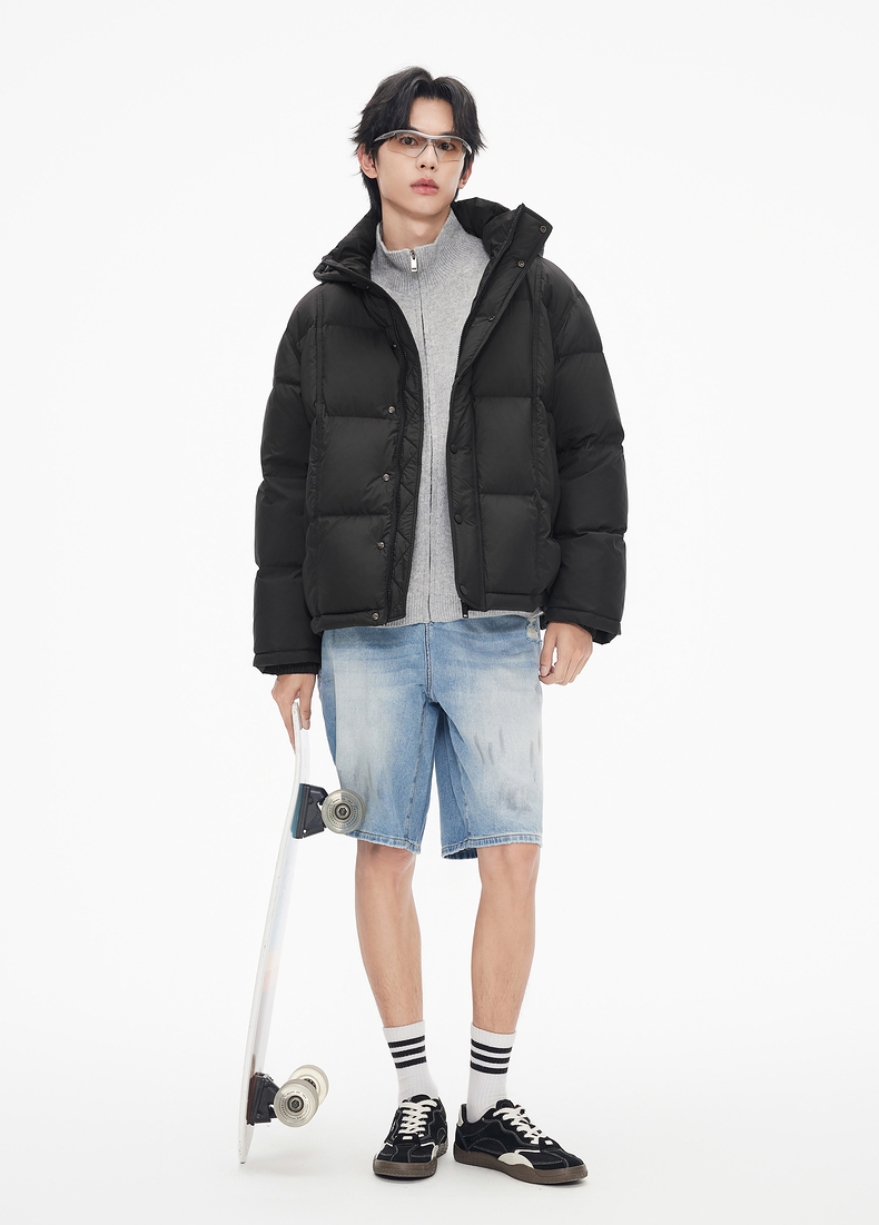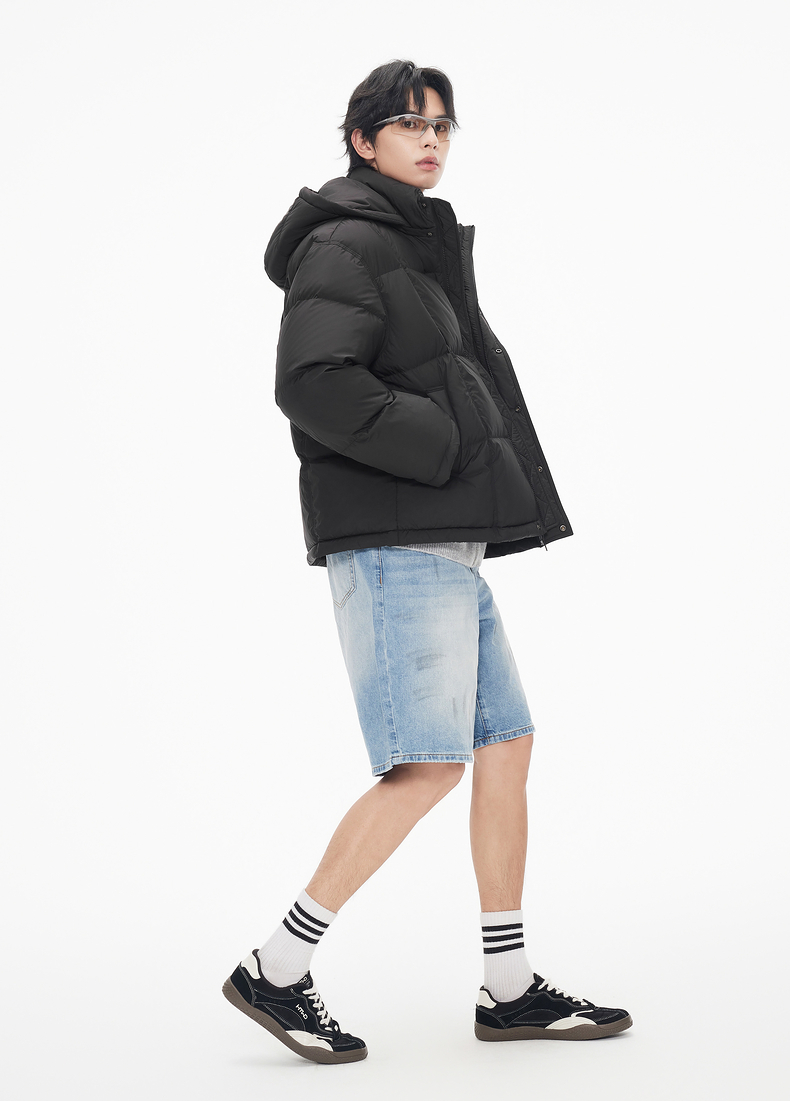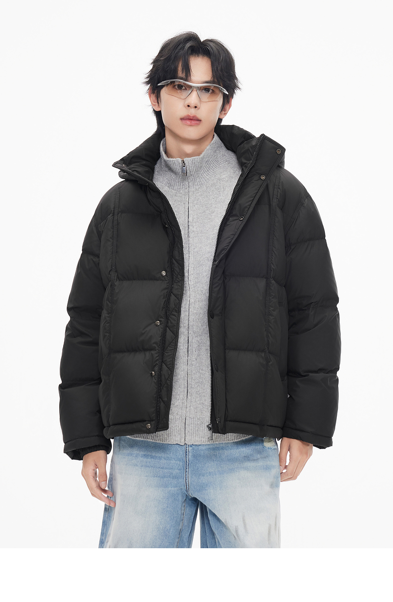 gxg.jeans男装 连帽羽绒服短款外套黑色防寒面包服潮25年冬热卖