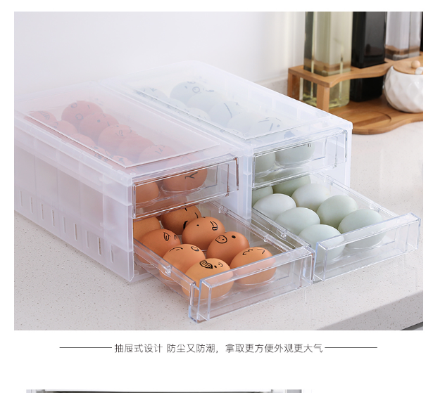 冰箱抽屉式双层鸡蛋收纳盒 冰箱鸡蛋收纳盒保鲜盒厨房整理装放架托蛋盒3.30
