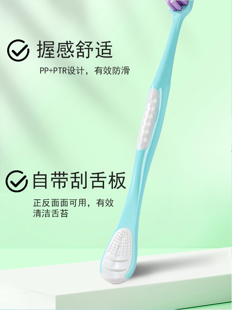「10支桶装!自带舌苔板」桶装10支装舌苔板牙刷软毛宽头成人家用家庭装口腔护理舌苔清洁器 商品图4