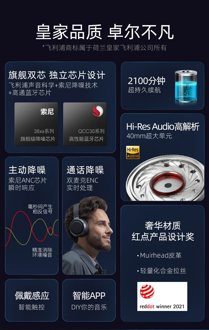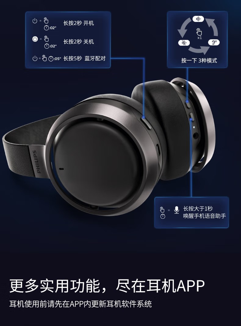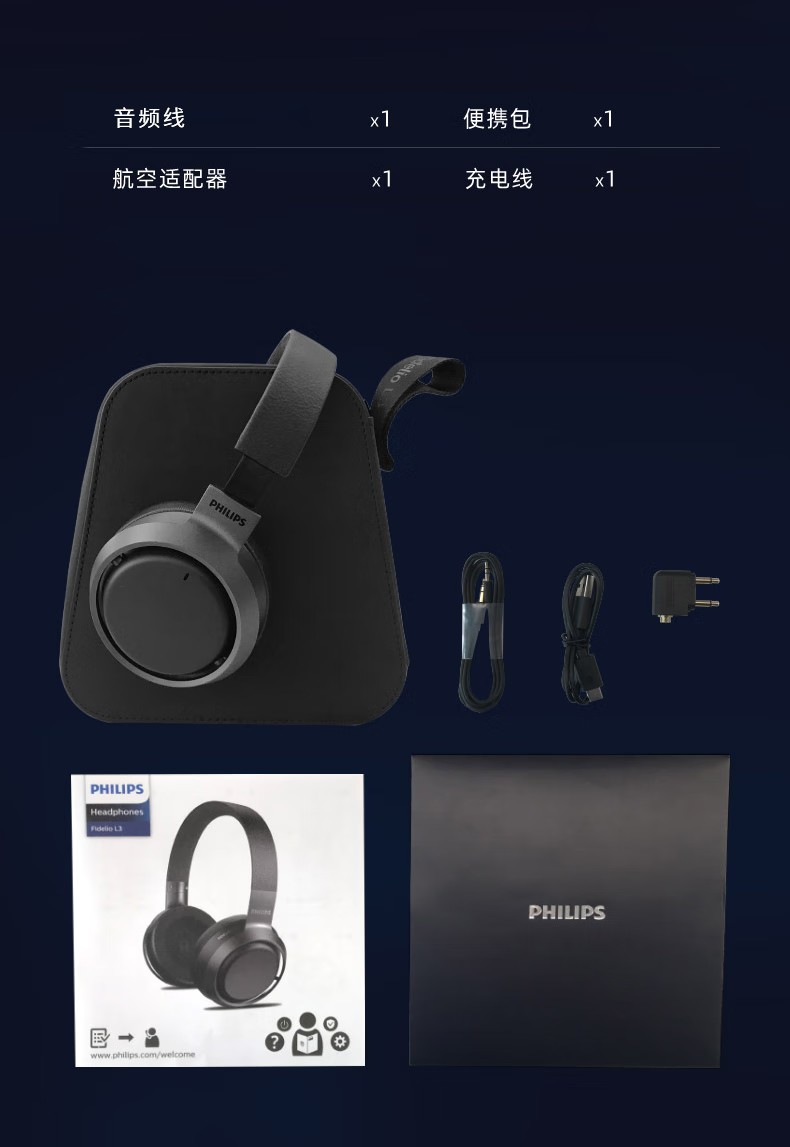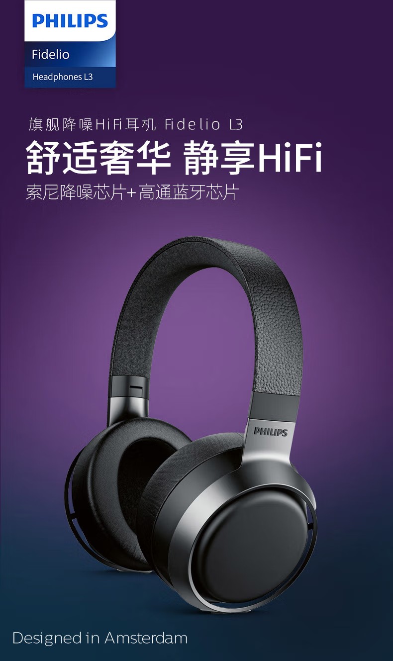 飞利浦头戴式耳机ANC主动降噪蓝牙耳机Hi-Res高保真 Fidelio L3