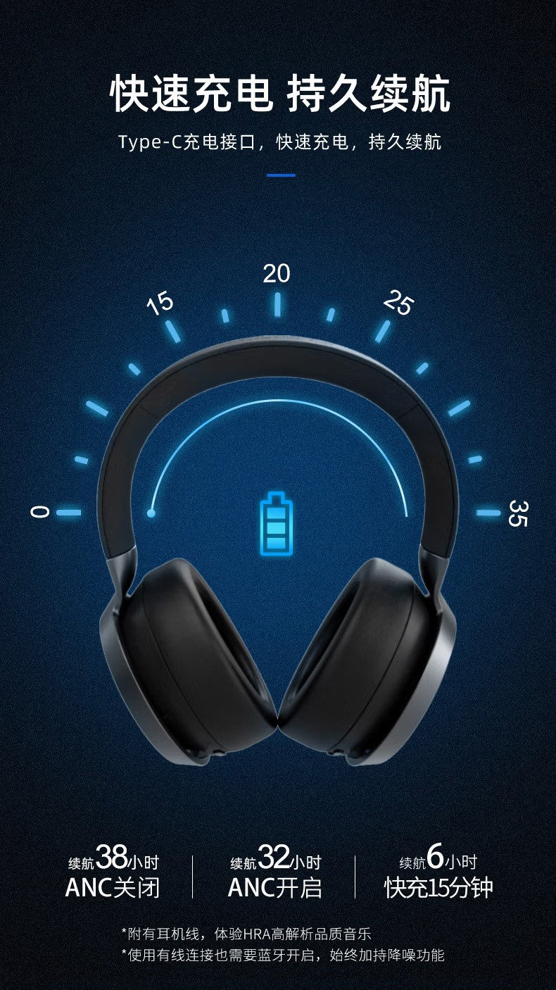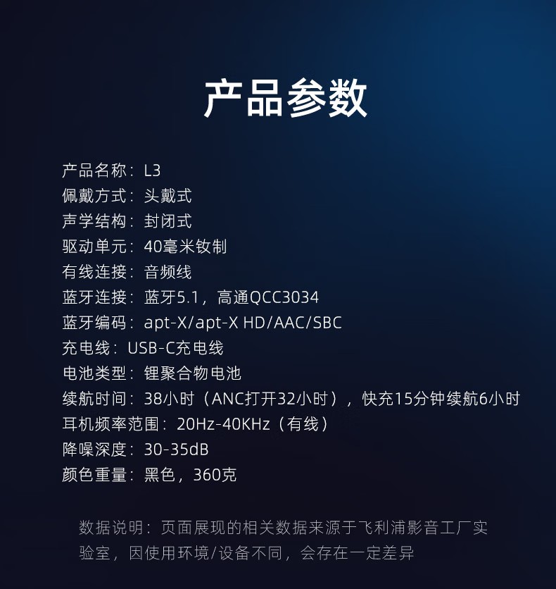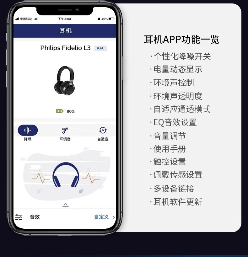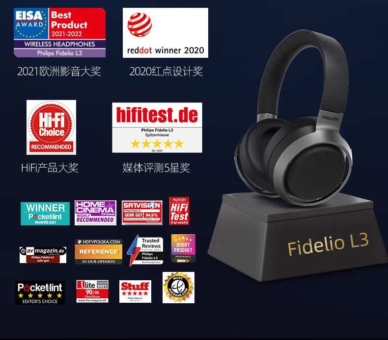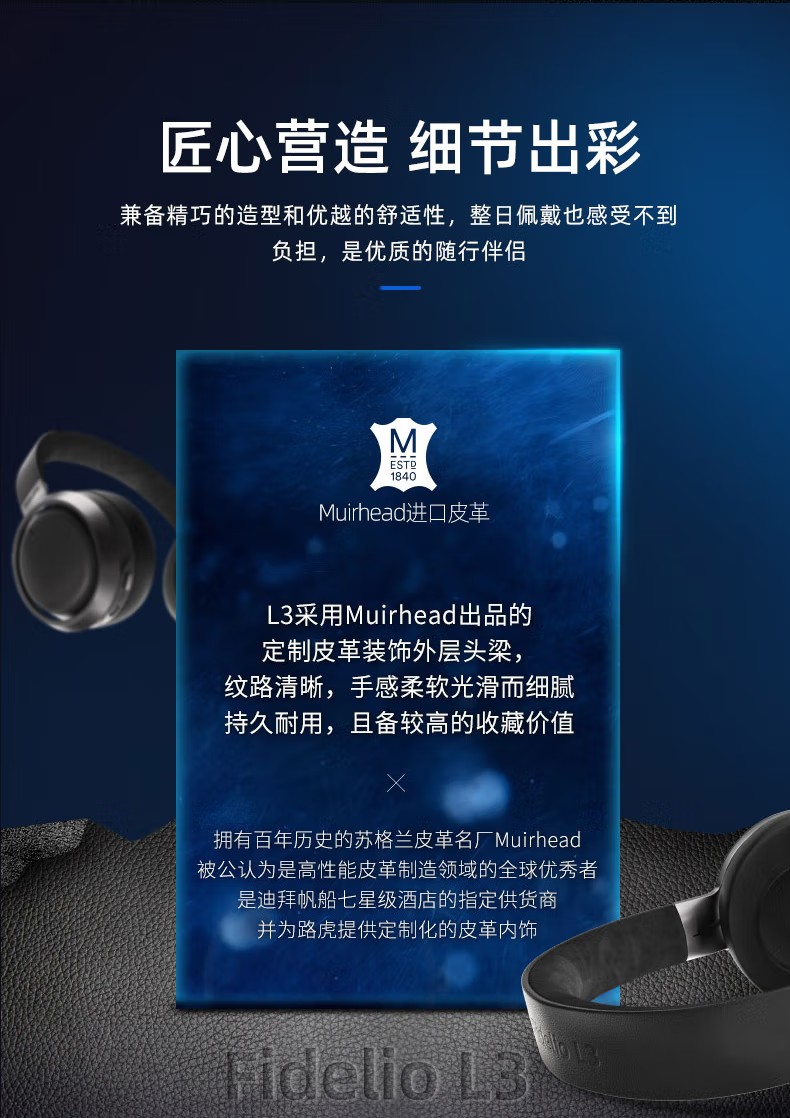 飞利浦头戴式耳机ANC主动降噪蓝牙耳机Hi-Res高保真 Fidelio L3
