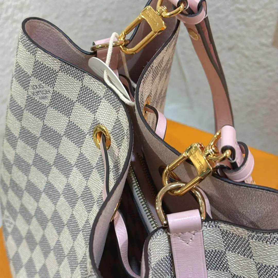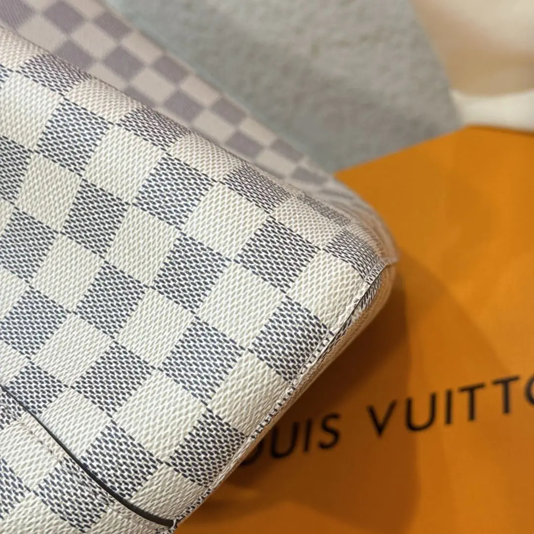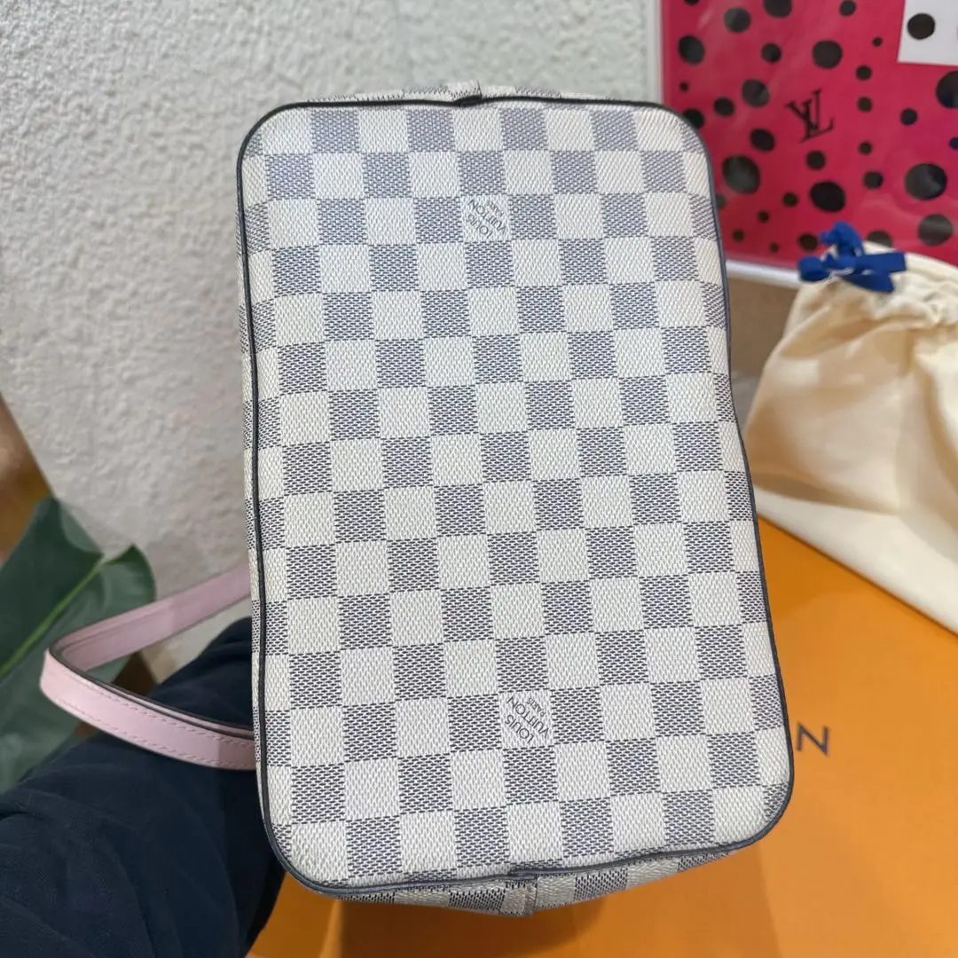 【商品详情】正品二手 Lv 白棋盘格 老花 水桶包😎98新 27x25 配件:肩带 防尘袋 盒。永不过时的经典。
