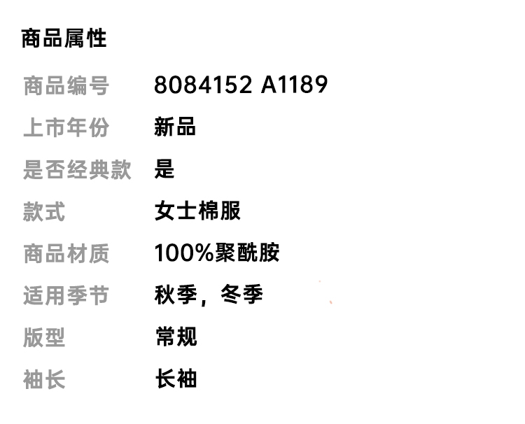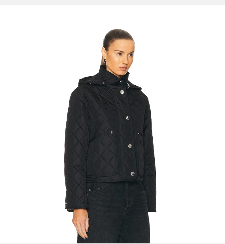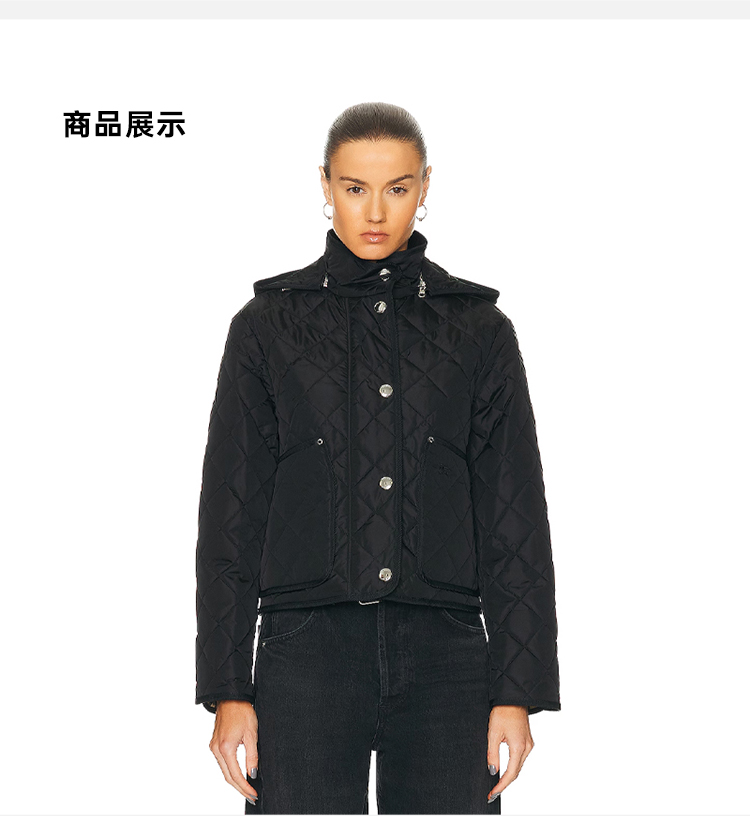BURBERRY 巴宝莉 女士绗缝连帽棉服 黑色 8084152 A1189