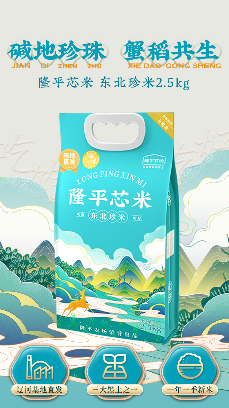 袁谷隆平芯米东北珍米2.5kg东北大米粳米5斤粥米珍珠米当季新米