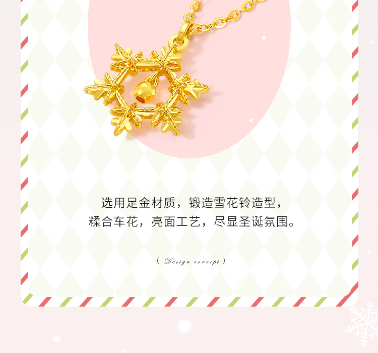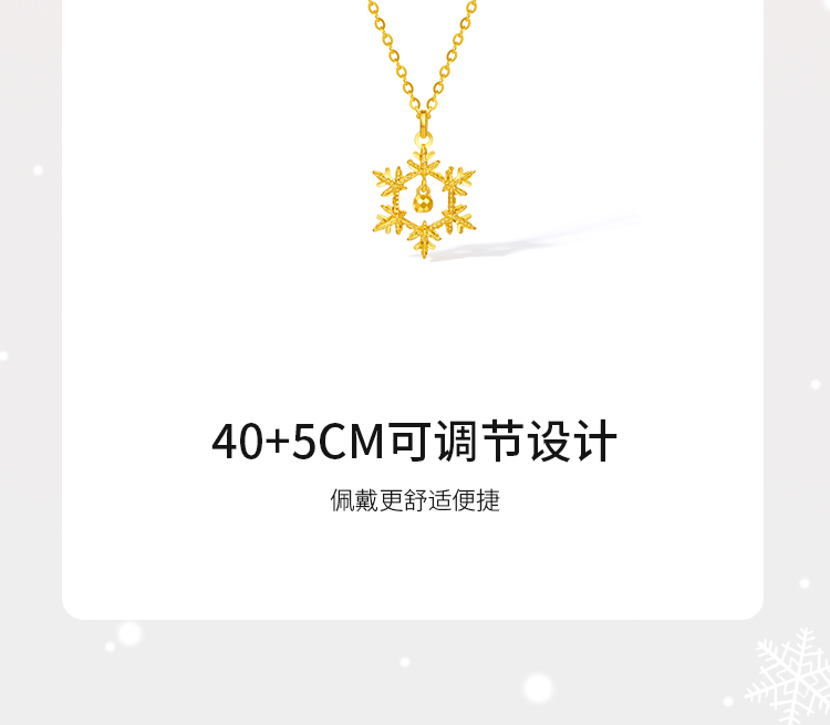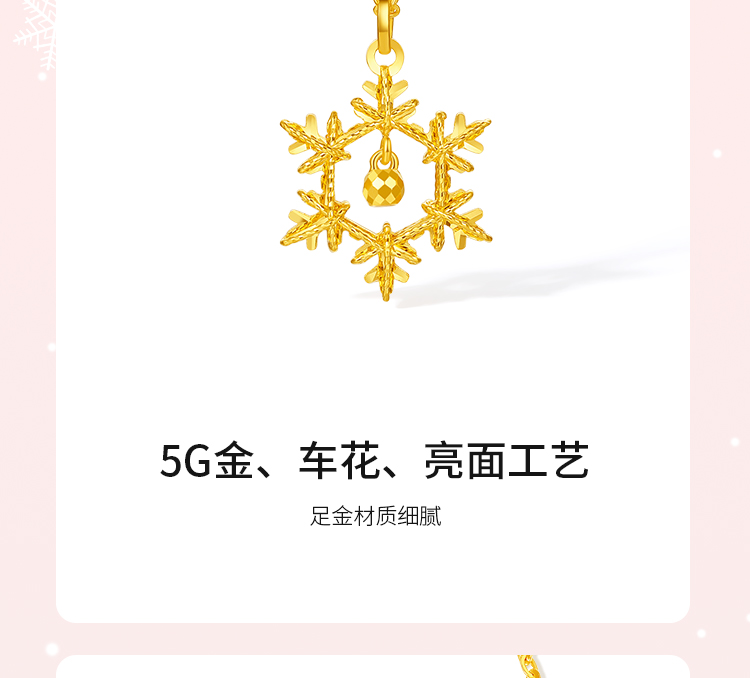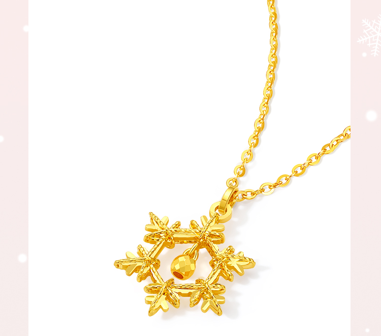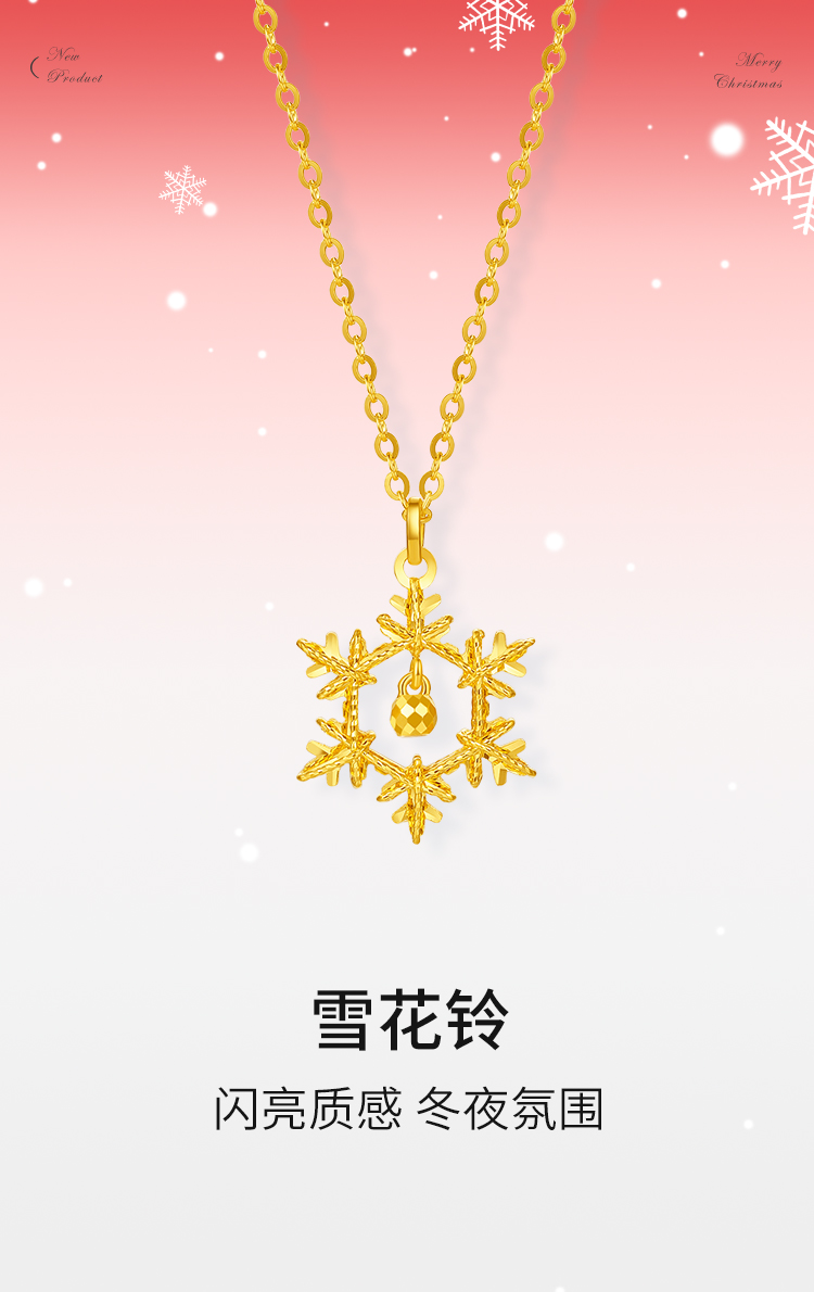 周六福5G计价黄金雪花铃链坠圣诞节新品女款项链节日礼物