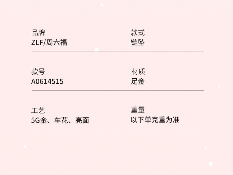 周六福黄金项链祥云定价精致颈饰节日礼物3D硬金吊坠送女友