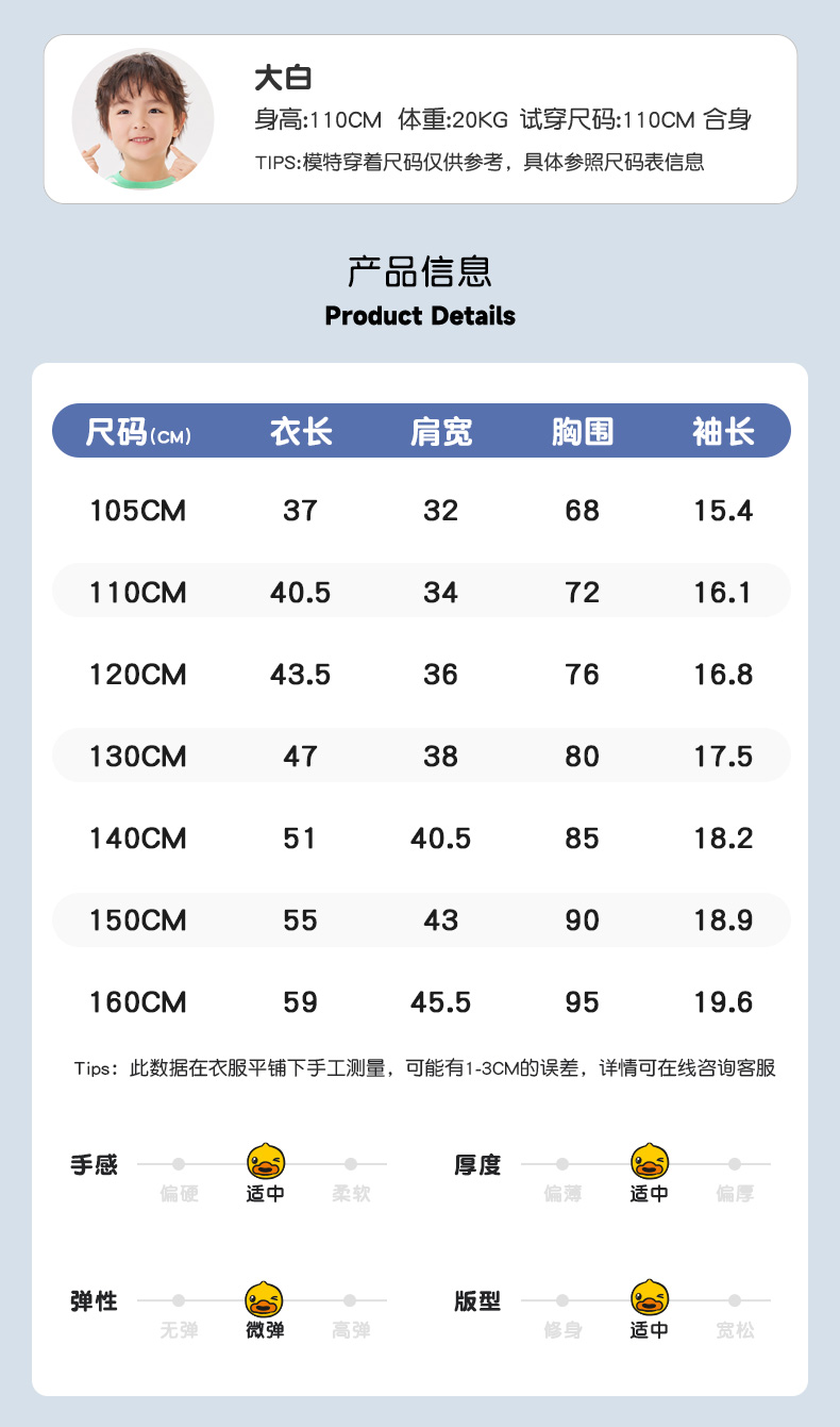 B.Duck小黄鸭童装夏季短袖T恤105-160 BF2402002