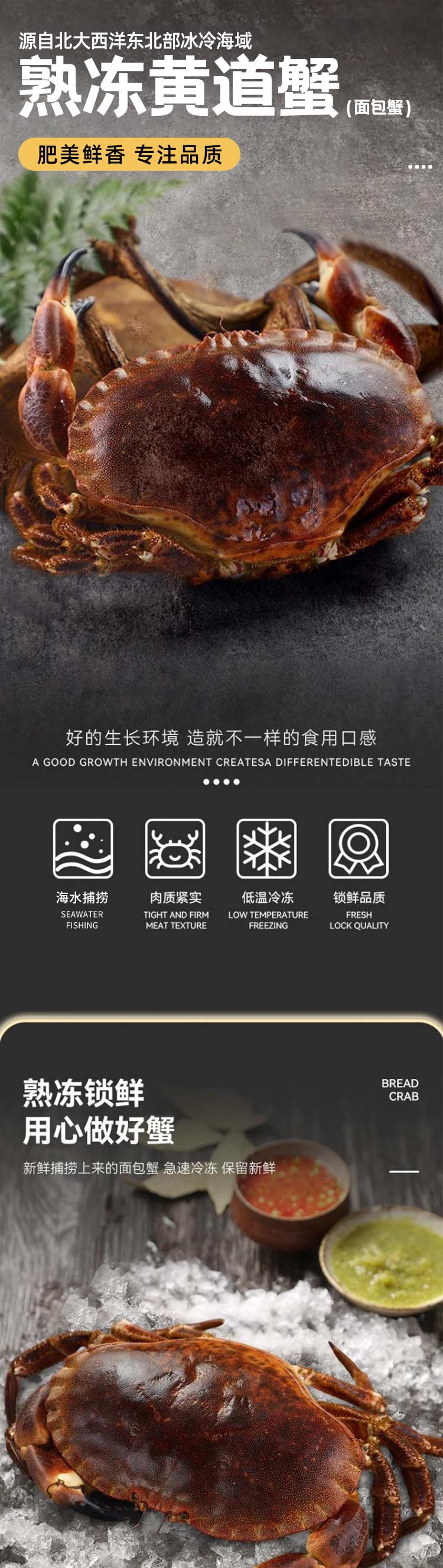 【野生海产】英国进口整只熟冻黄道蟹(面包蟹)800g 大西洋纯净海域