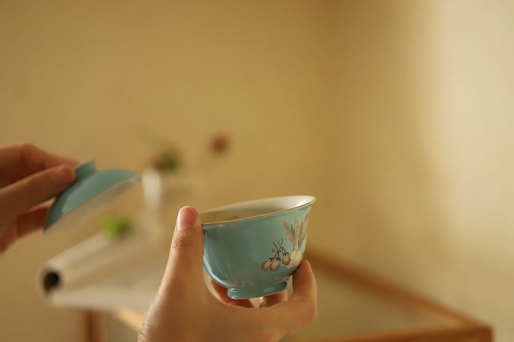 景德镇云木在 摘我园中蔬茶碗 二才盖碗单个功夫陶瓷泡茶碗