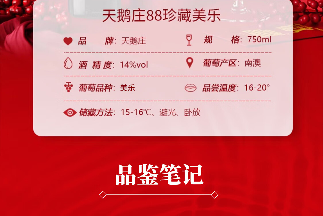 天鹅庄BIN88西拉干红葡萄酒 750ML