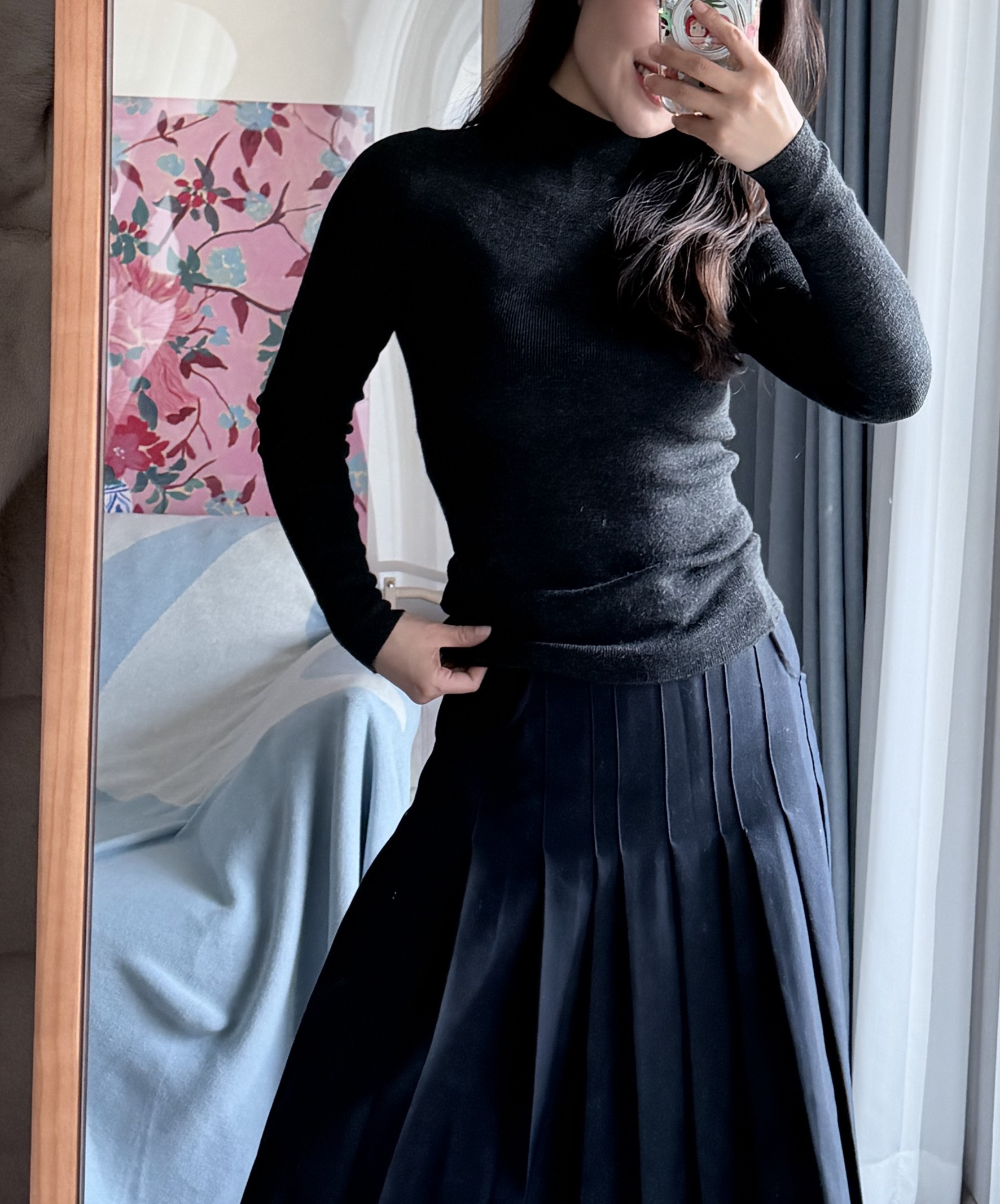 美丽诺无缝半高领针织打底衫|可