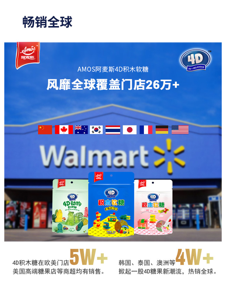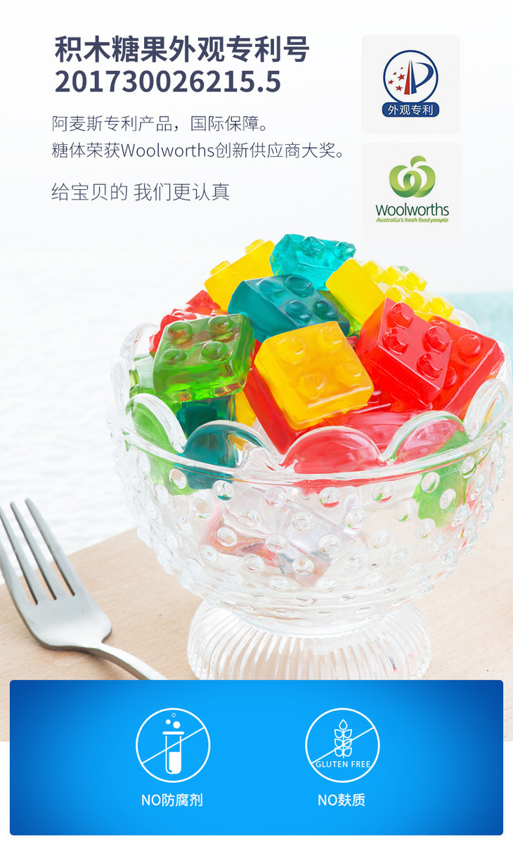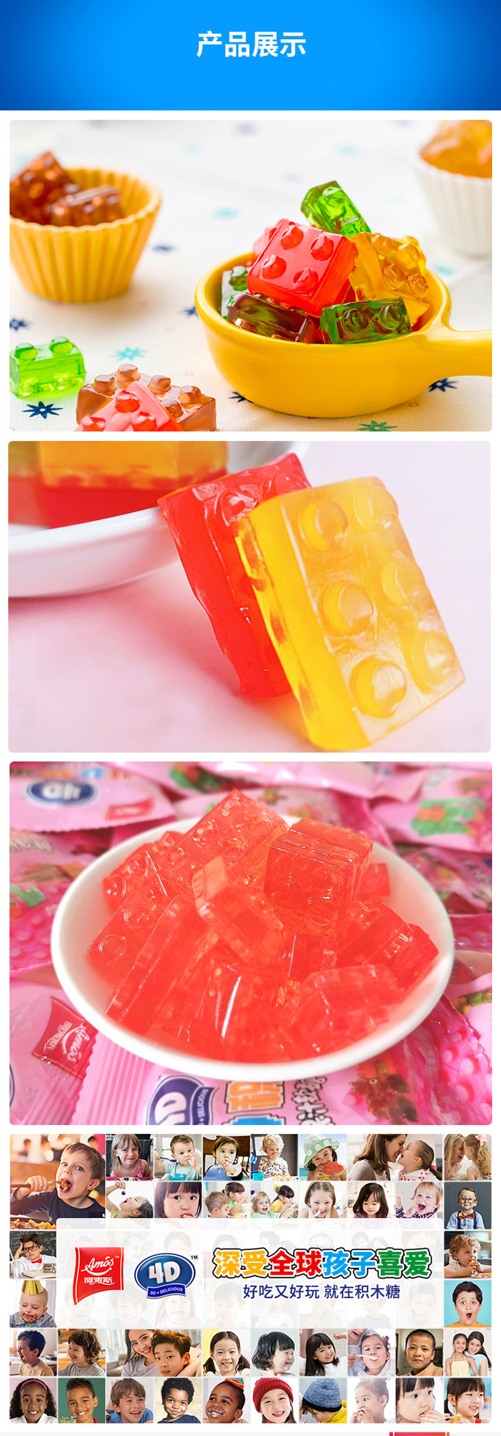 Amos阿麦斯4D积木水蜜桃味 28g*5袋 水果动物 果汁软糖 网红糖果零食 惊艳3D造型 益智大挑战