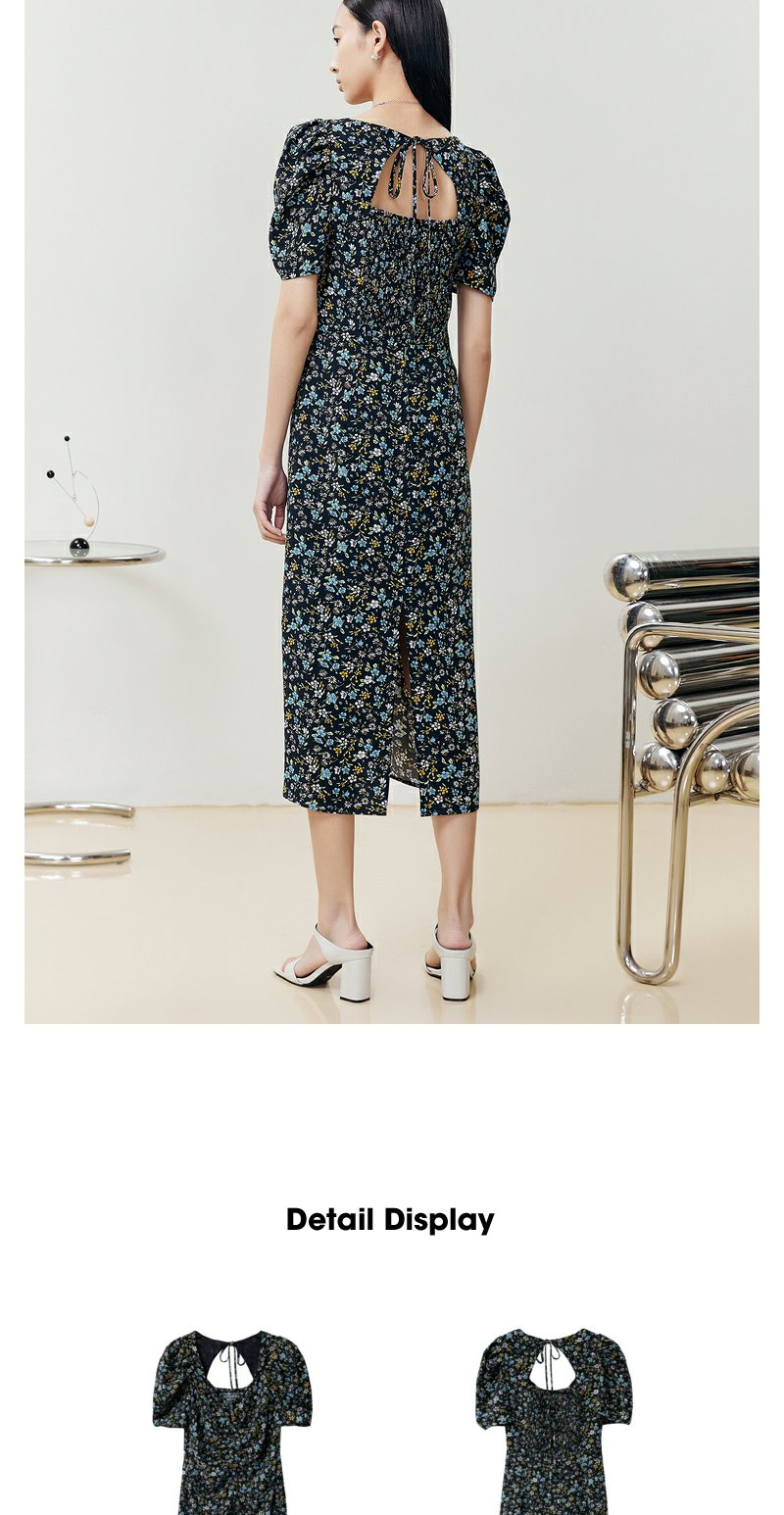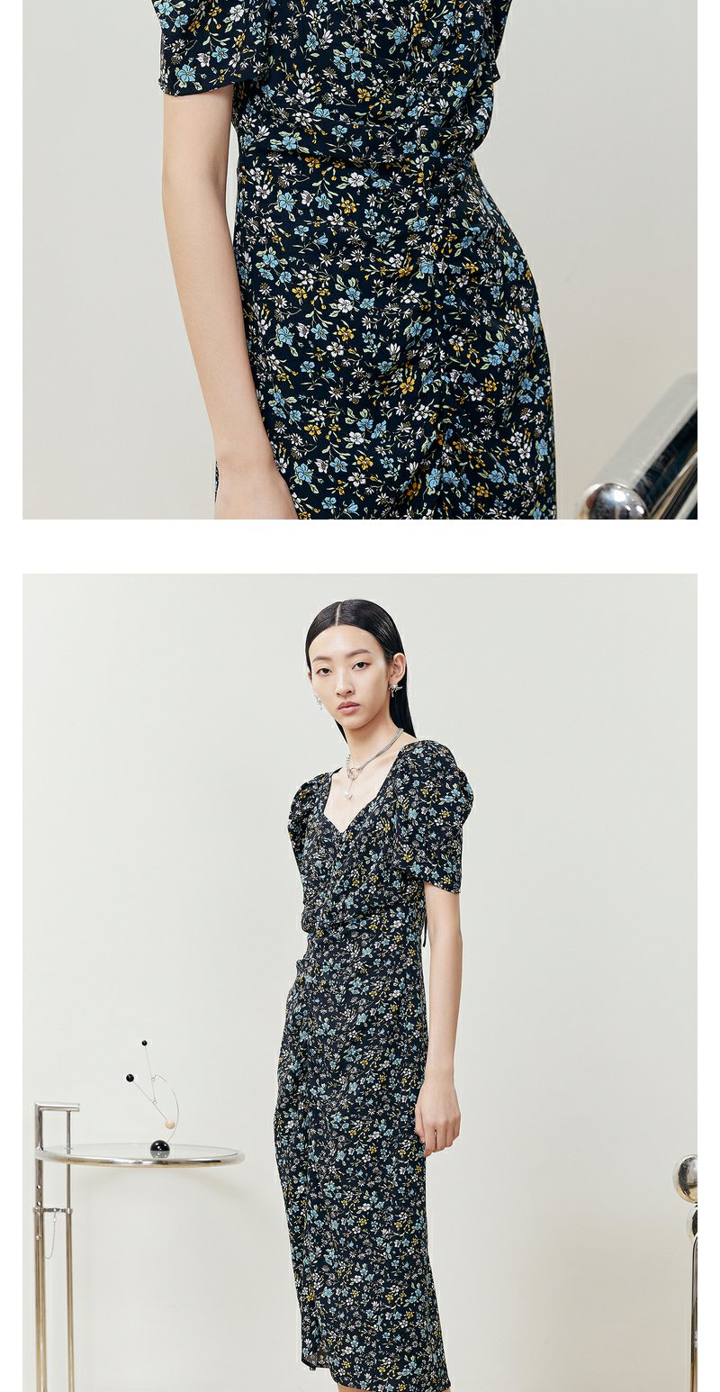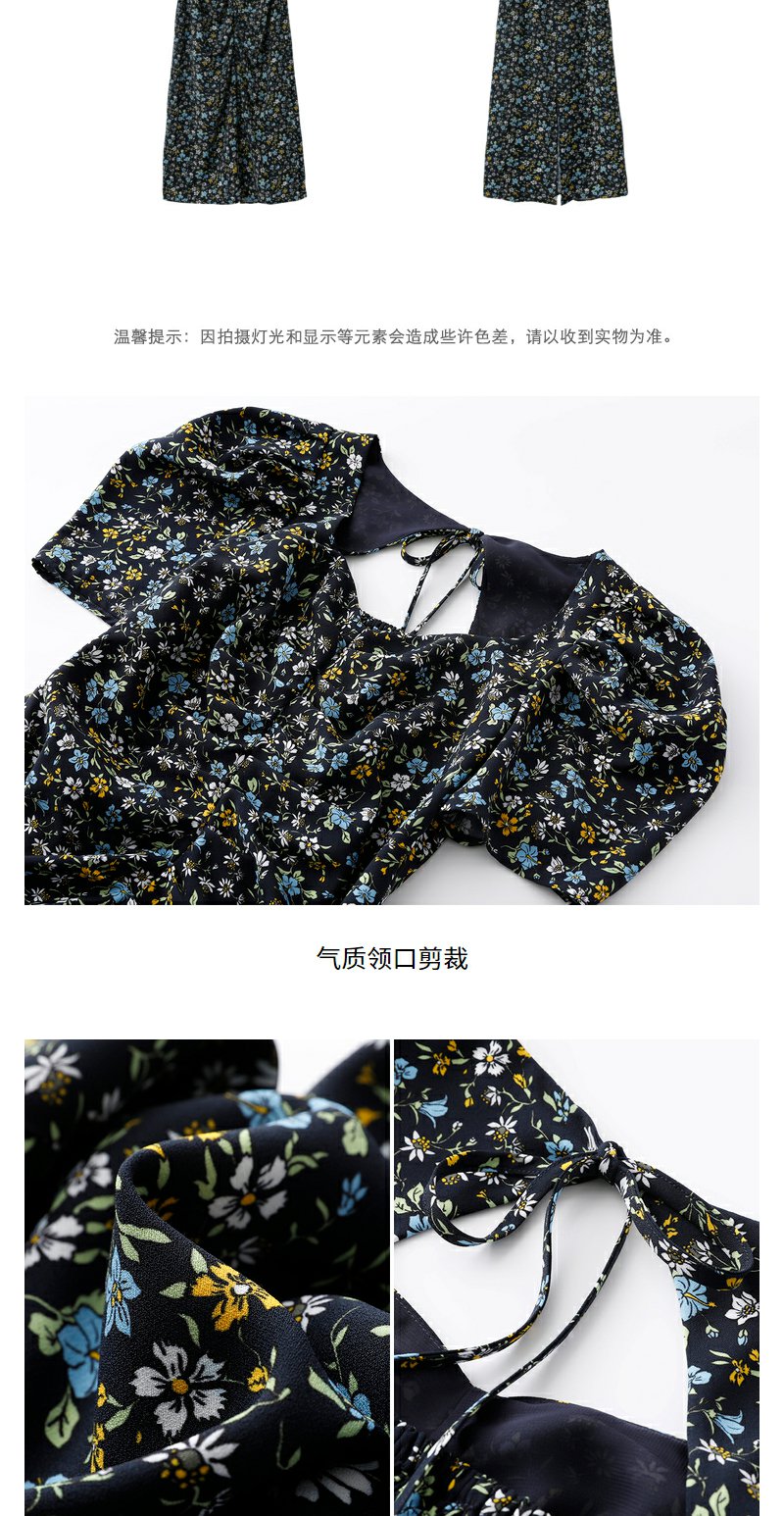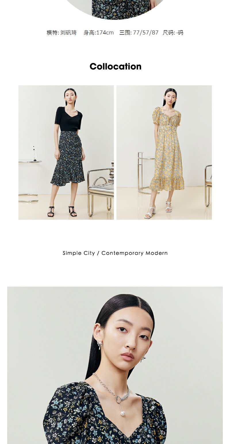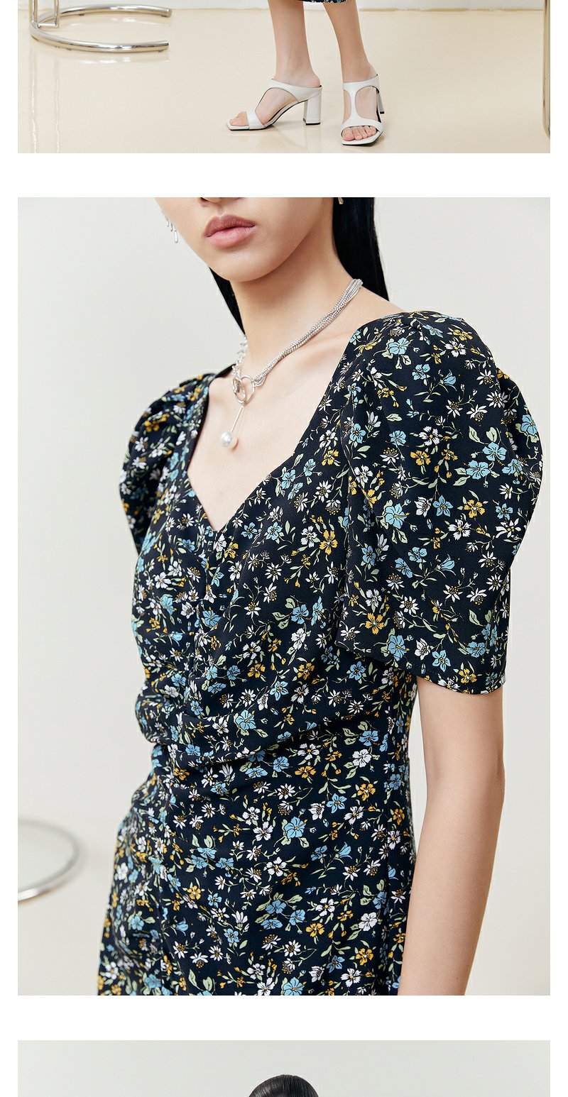 NEELLY纳俪商场同款碎花连衣裙女中长款抽褶拼接泡泡袖A字茶歇裙N23044Y04413