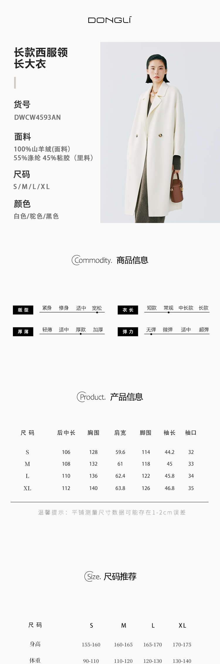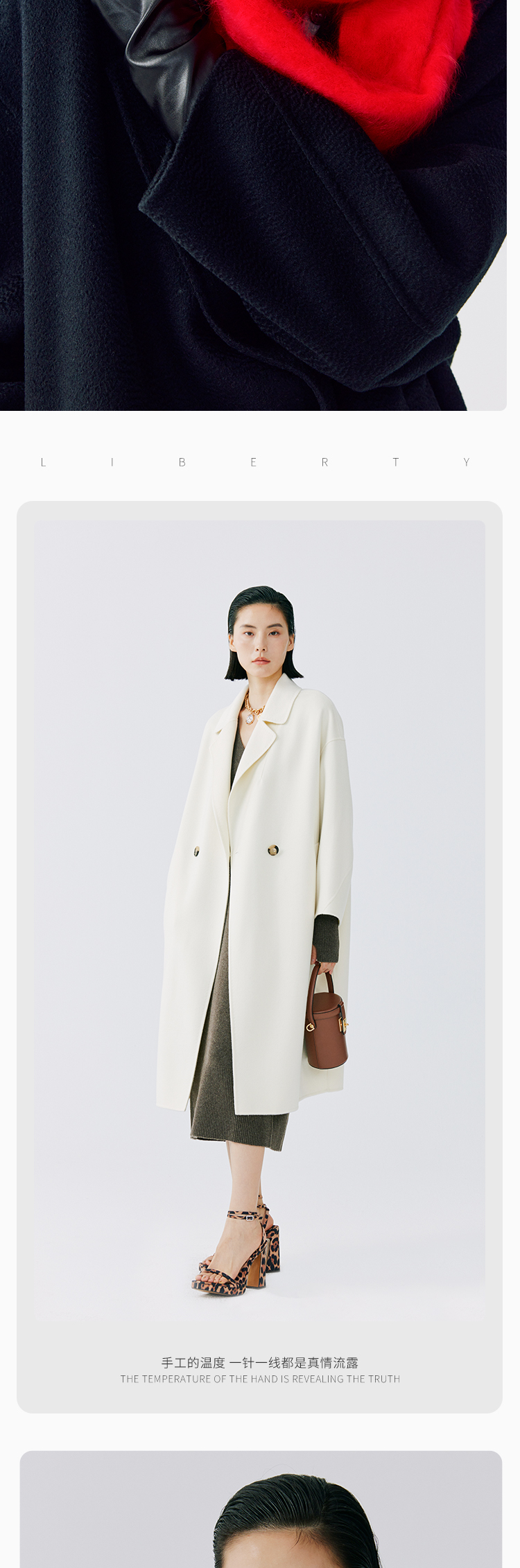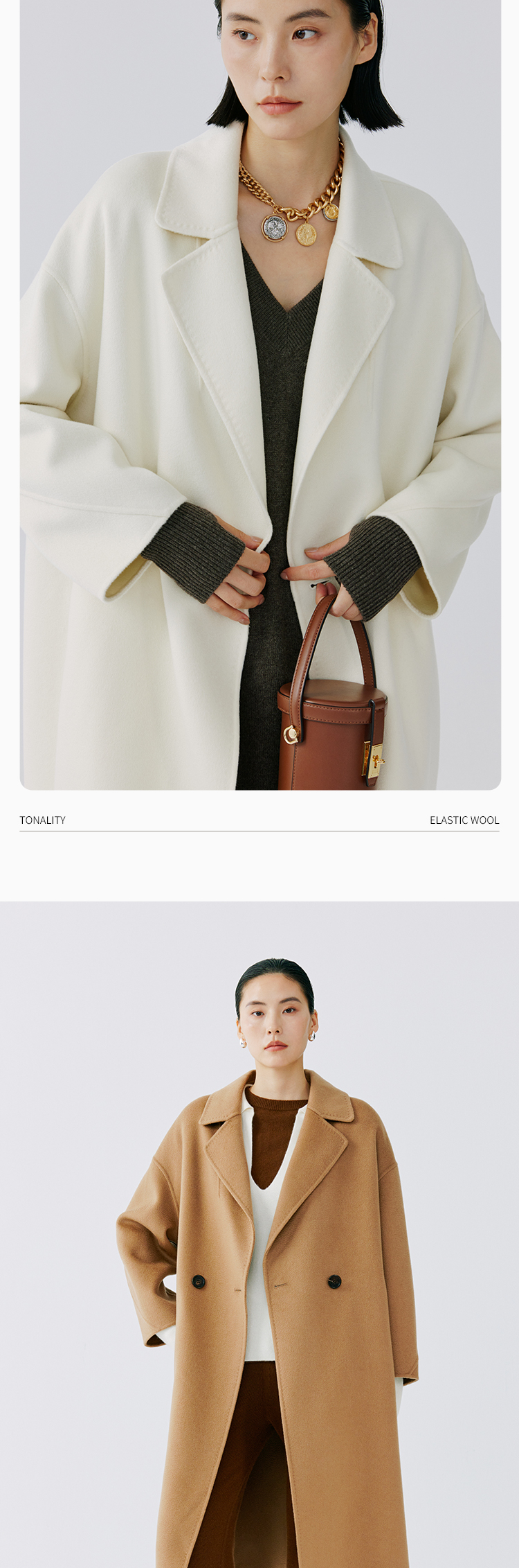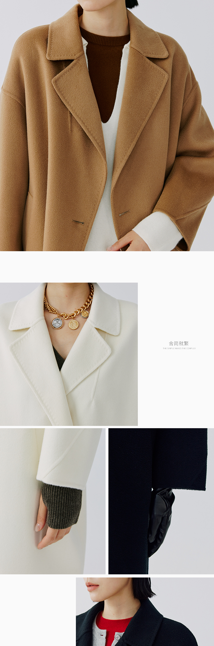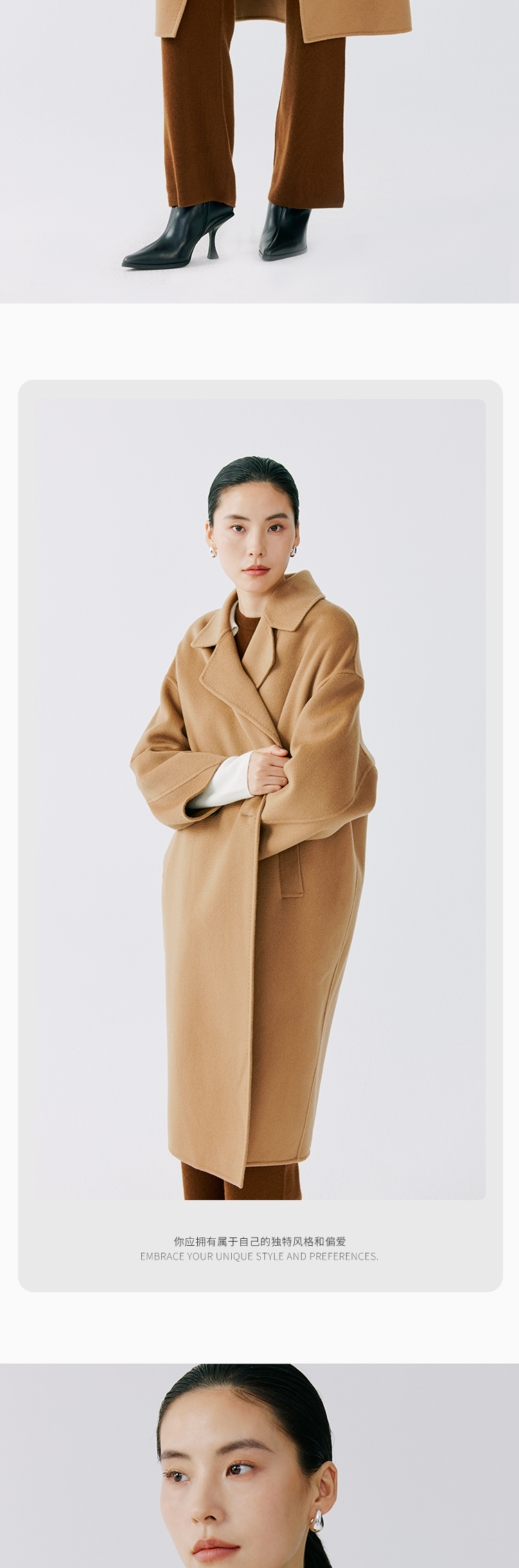 东黎 • 山羊绒女士秋冬长款简约翻领一粒扣羊绒大衣 4593