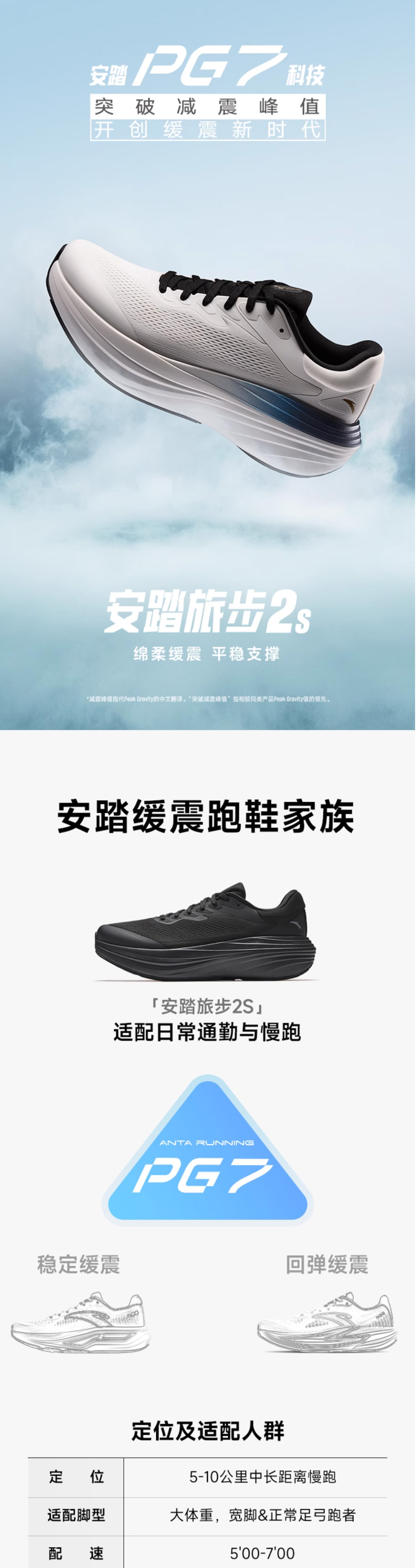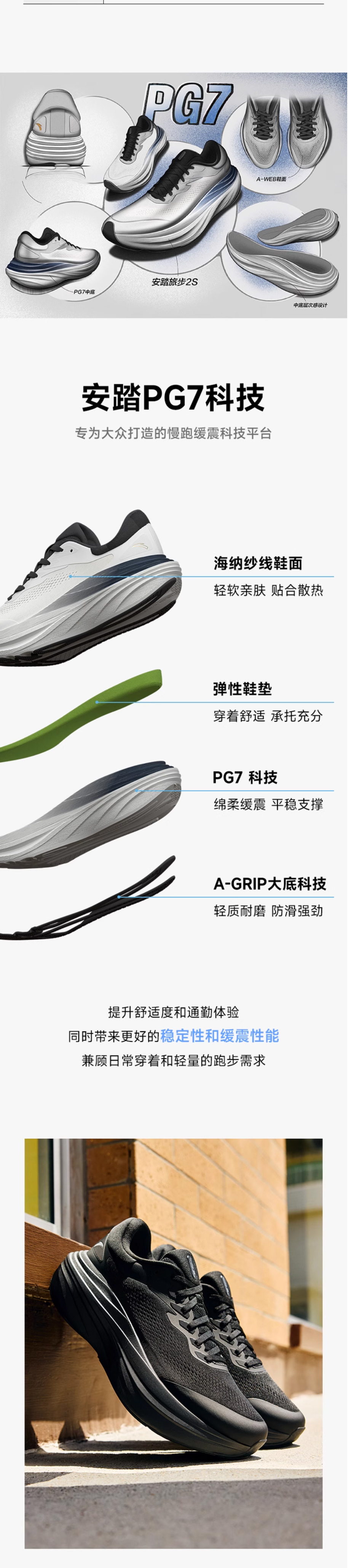 安踏旅步2S丨PG7厚底缓震回弹跑步鞋男耐磨舒适运动鞋子112535545-4