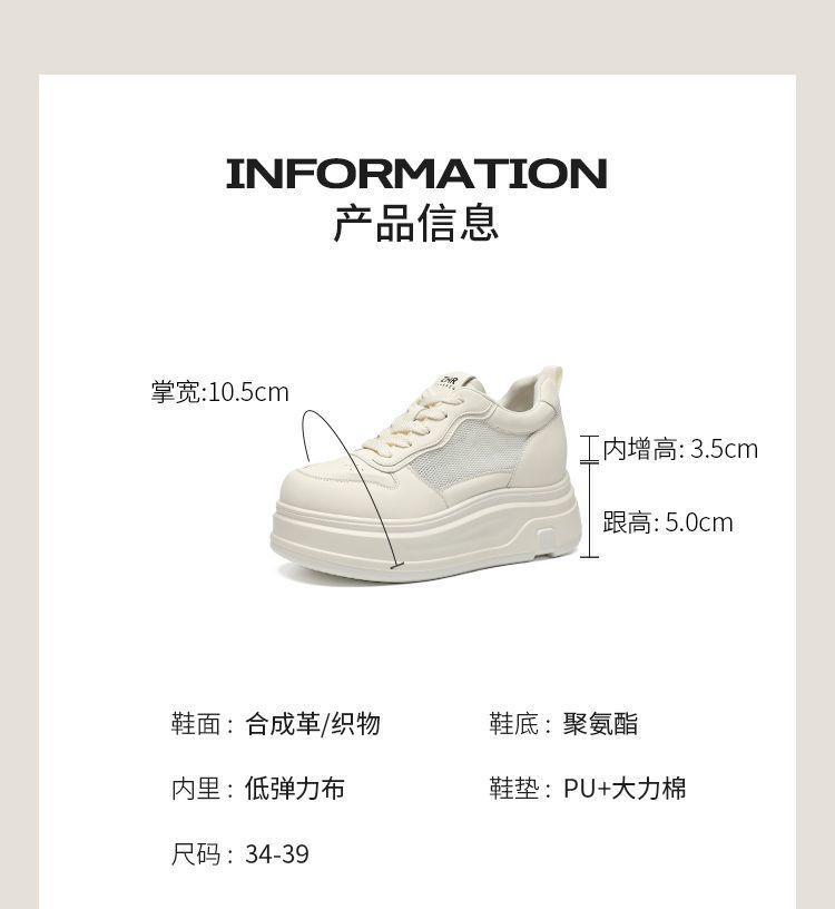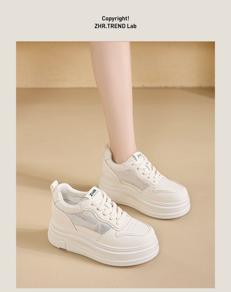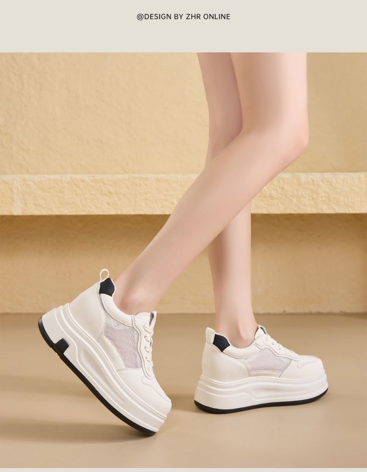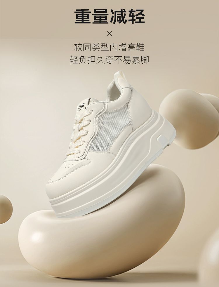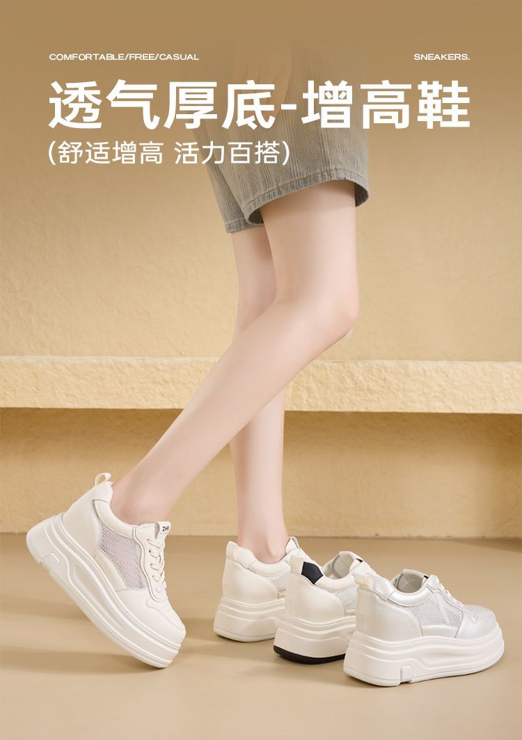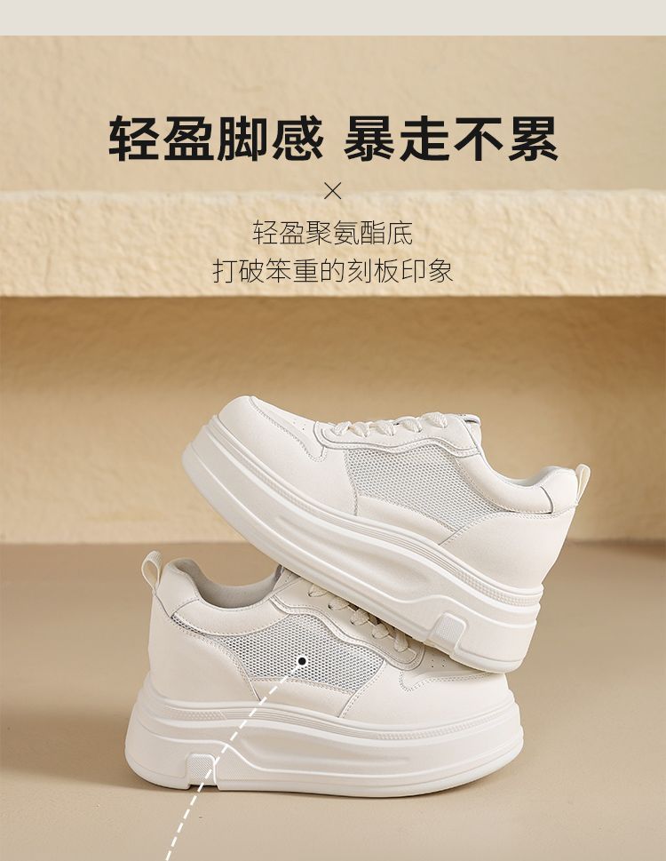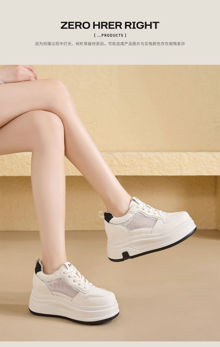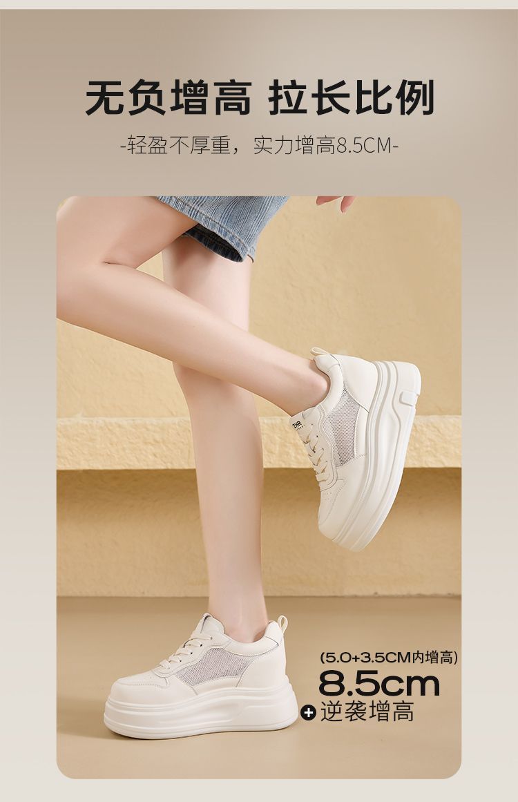 ZHR【8.5cm】厚底内增高小白鞋小个子网面透气休闲鞋轻便耐磨女鞋