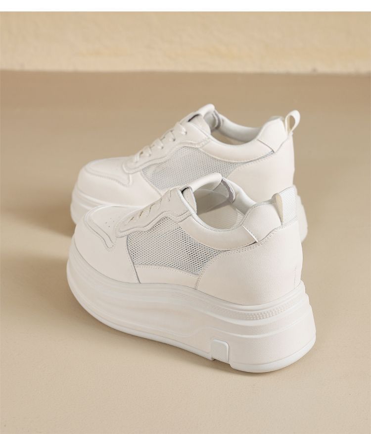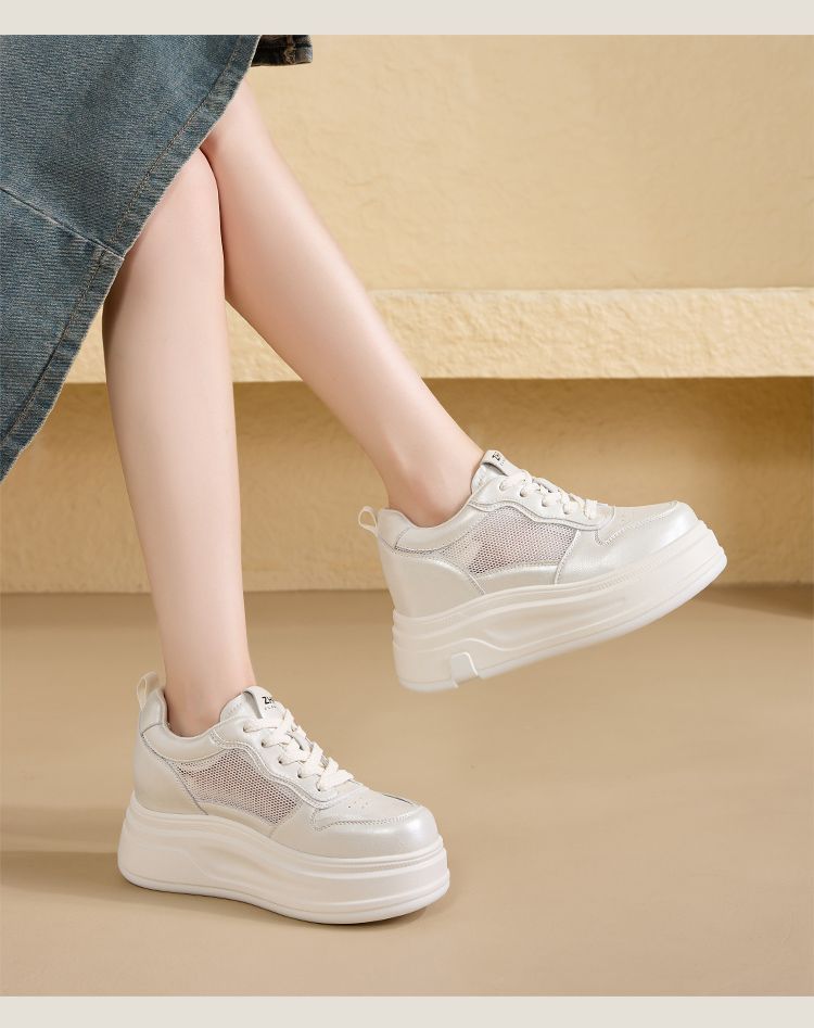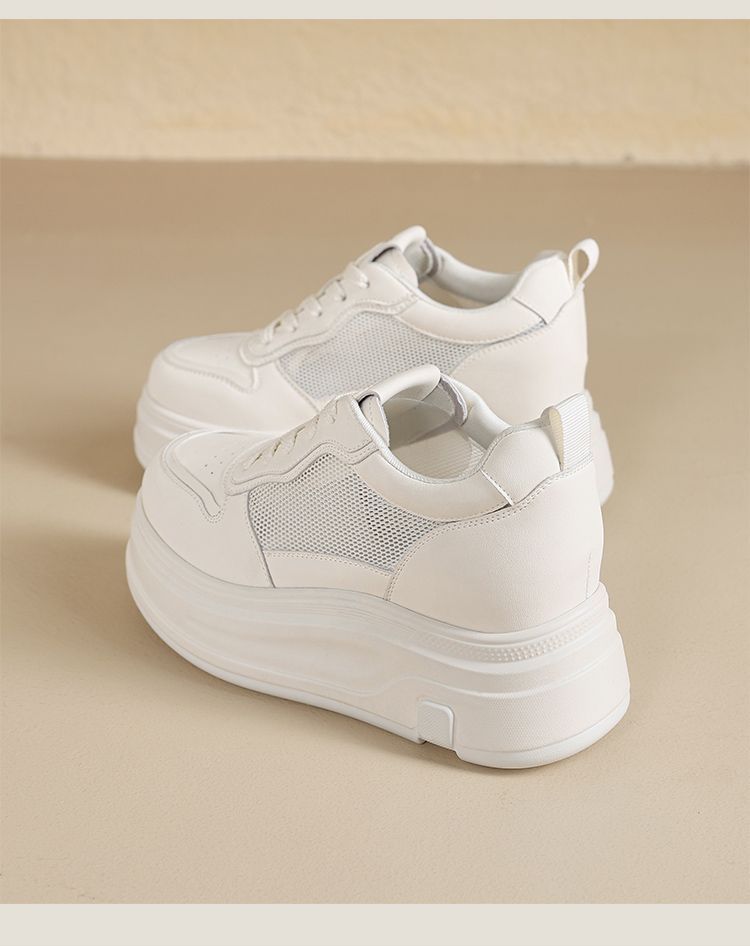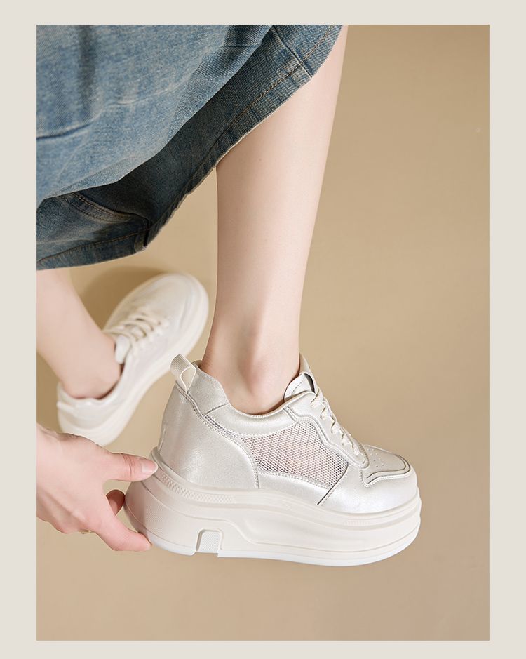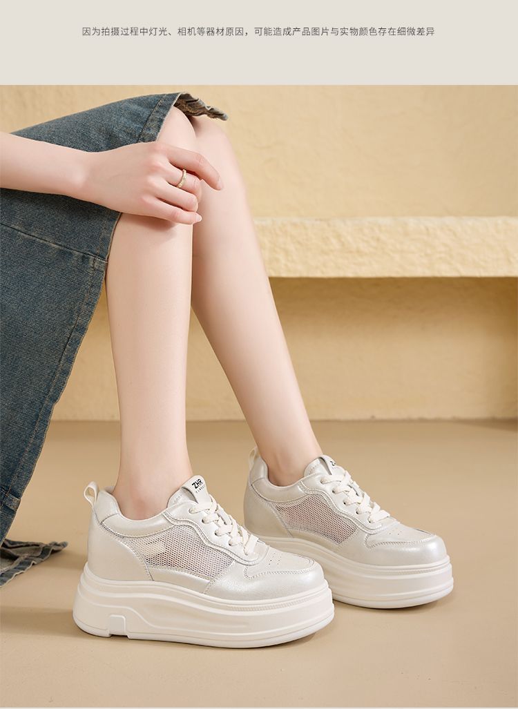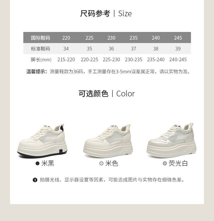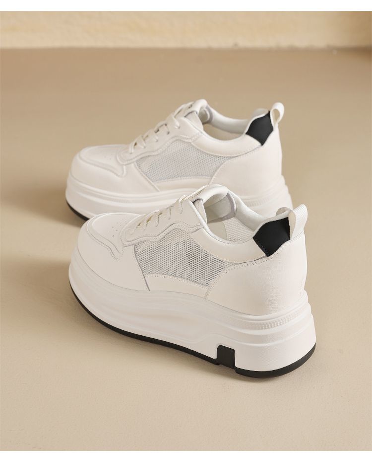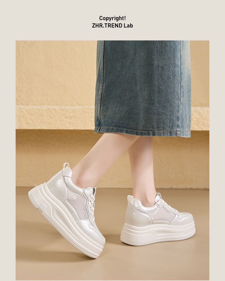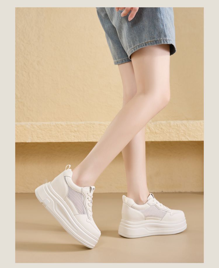 ZHR【8.5cm】厚底内增高小白鞋小个子网面透气休闲鞋轻便耐磨女鞋