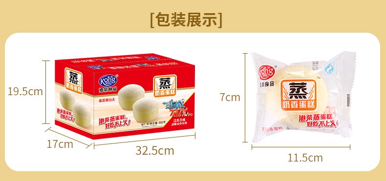 港荣蒸蛋糕新鲜奶香味 网红营养早餐零食糕点 整箱900g-XL